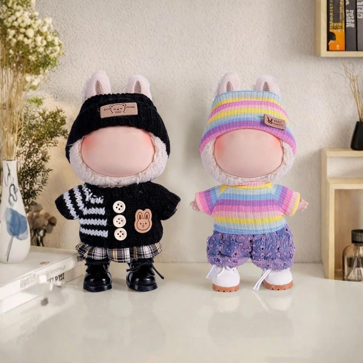 View compare4 Piece Handcrafted Crochet Doll Clothes for 17cm/15cm Labubu Dolls (No Doll) Cute and enhanced Outfits with Accessories Hand Crocheted Hat Sweaters Skirt Bag (Black) AK051