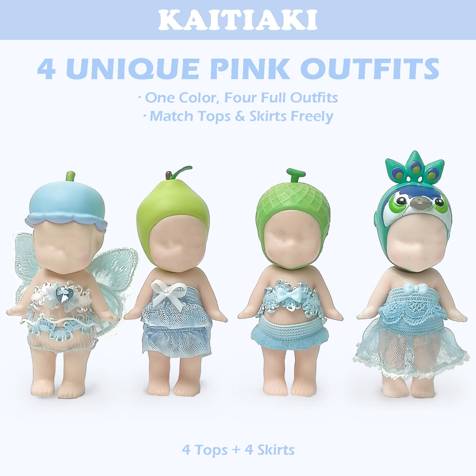 4 Sets Mini Doll Clothes for Sonny Angel Tops and Skirts Fit for 3 Inch Collectible Dolls for mature-themed Collectors Designed for Display and Decoration (Blueberry Fairy)