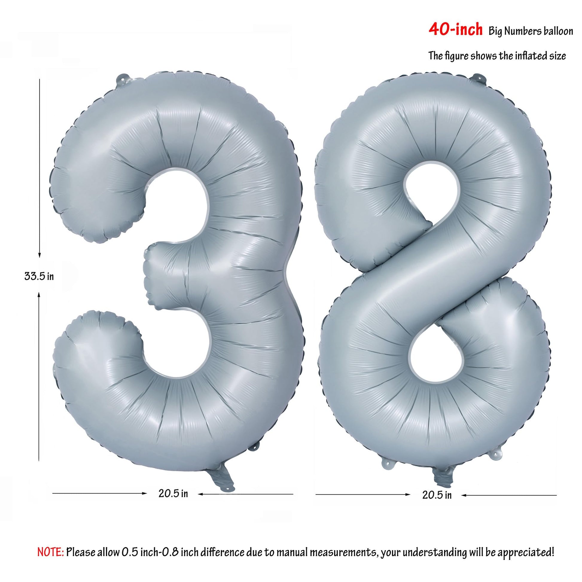 40 In Matte Gray Number Balloons Helium Foil Mylar Balloon Birthday Party Banquet Decoration 38