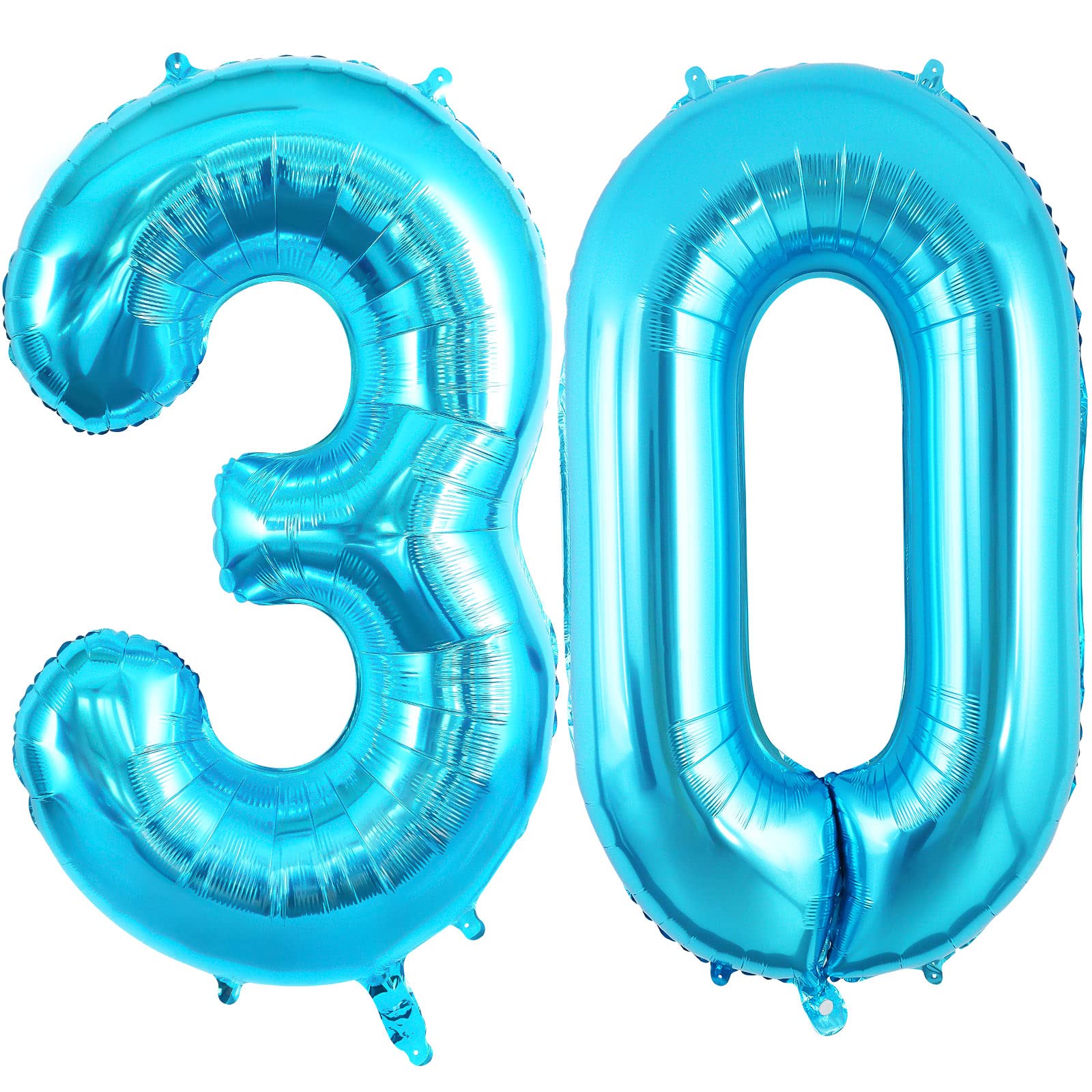 40 Inch Blue 30 Number Balloons, Jumbo Foil Balloons For 30Th Birthday Party Decorations Supplies / 30Th Anniversary Event