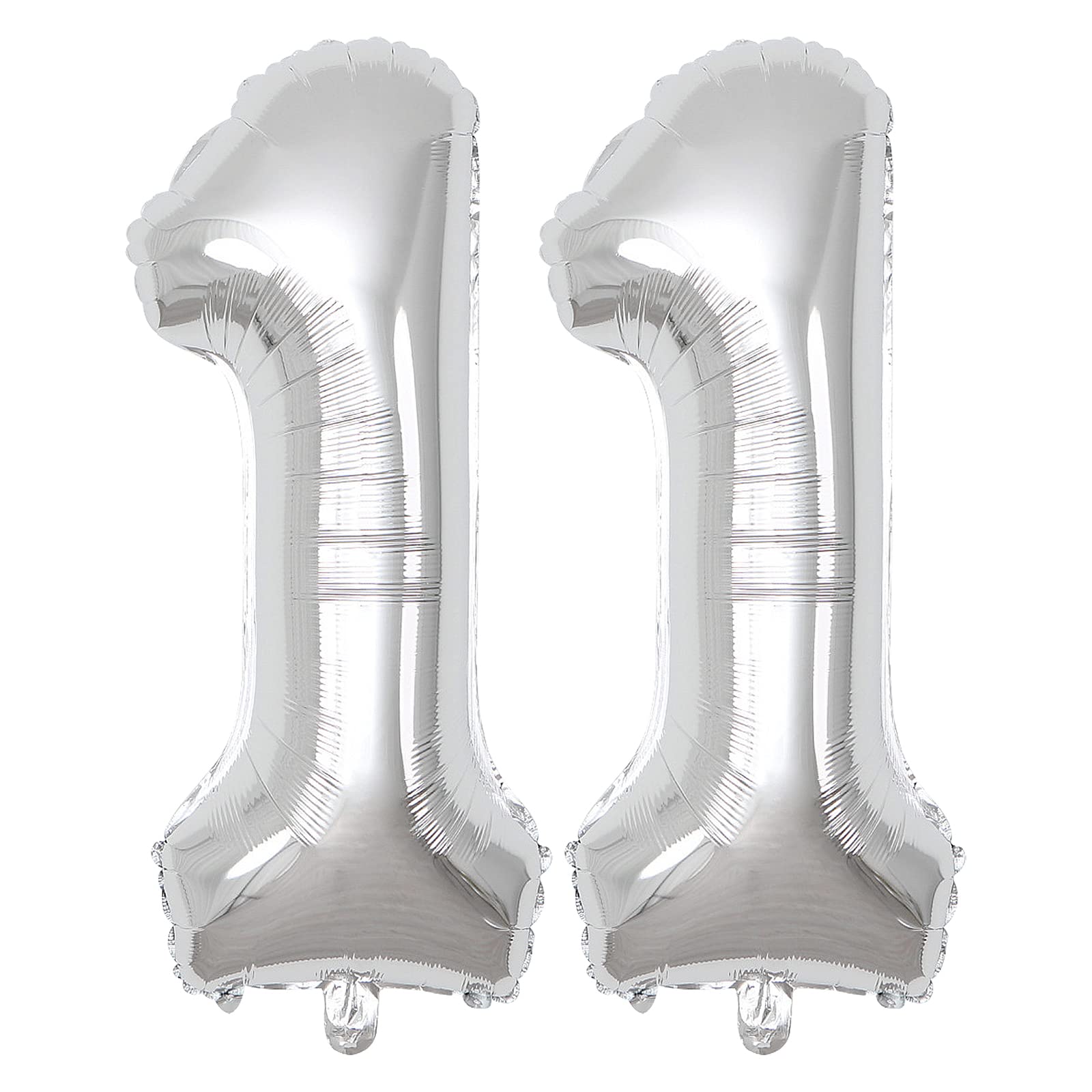 40 Inch Number Balloons 11, Silver Helium Foil Number 11 Balloons, Large Number Balloon Age Balloon For Boys Girls Birthday Part