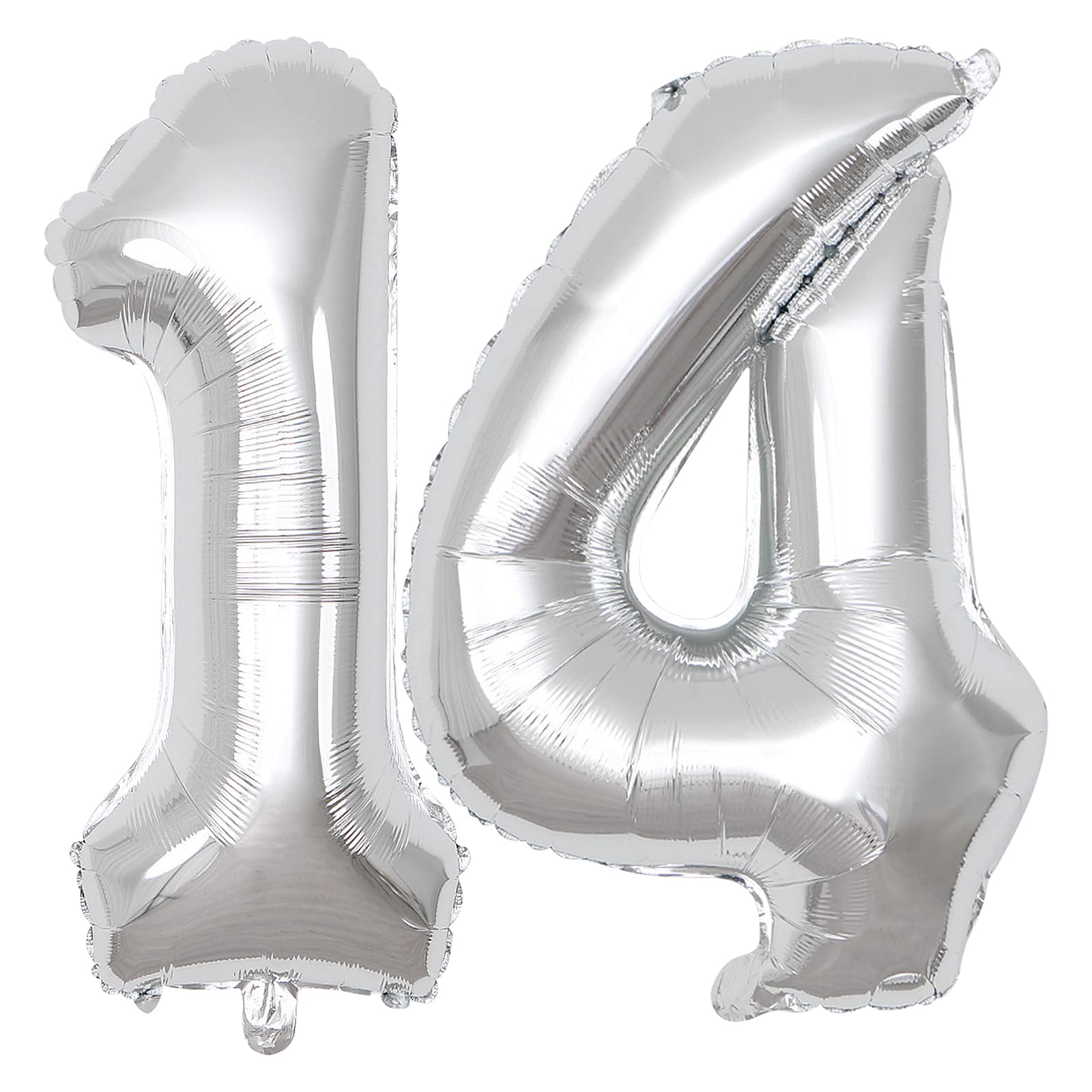 40 Inch Number Balloons 14, Silver Helium Foil Number 14 Balloons, Large Number Balloon Age Balloon For Boys Girls Birthday Part
