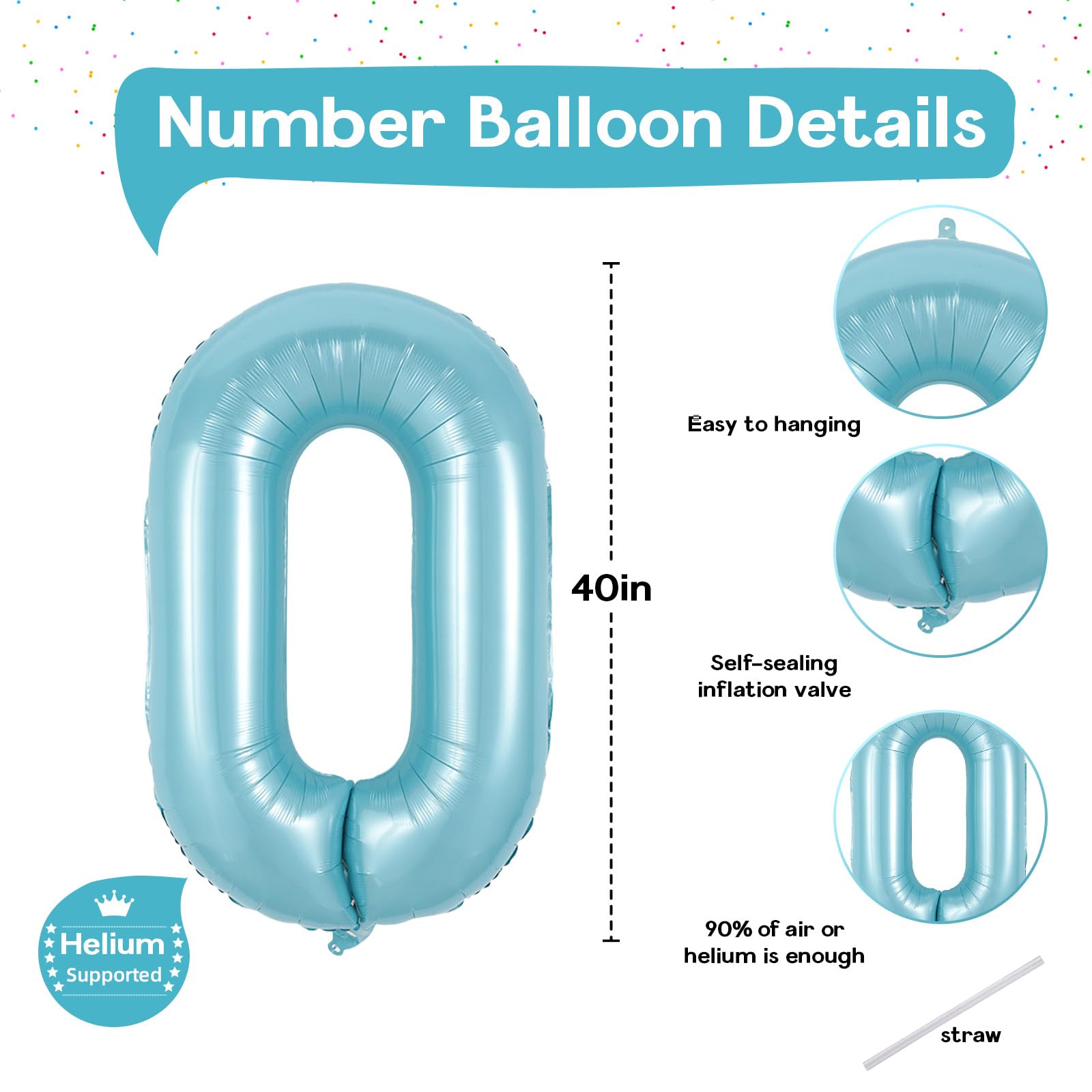 View compare40 Inch Pastel Blue Number 0 Balloons, Giant Self Inflating Foil Number Balloon 0-9 For Boys, Baby Light Blue Mylar Helium 0 Bal