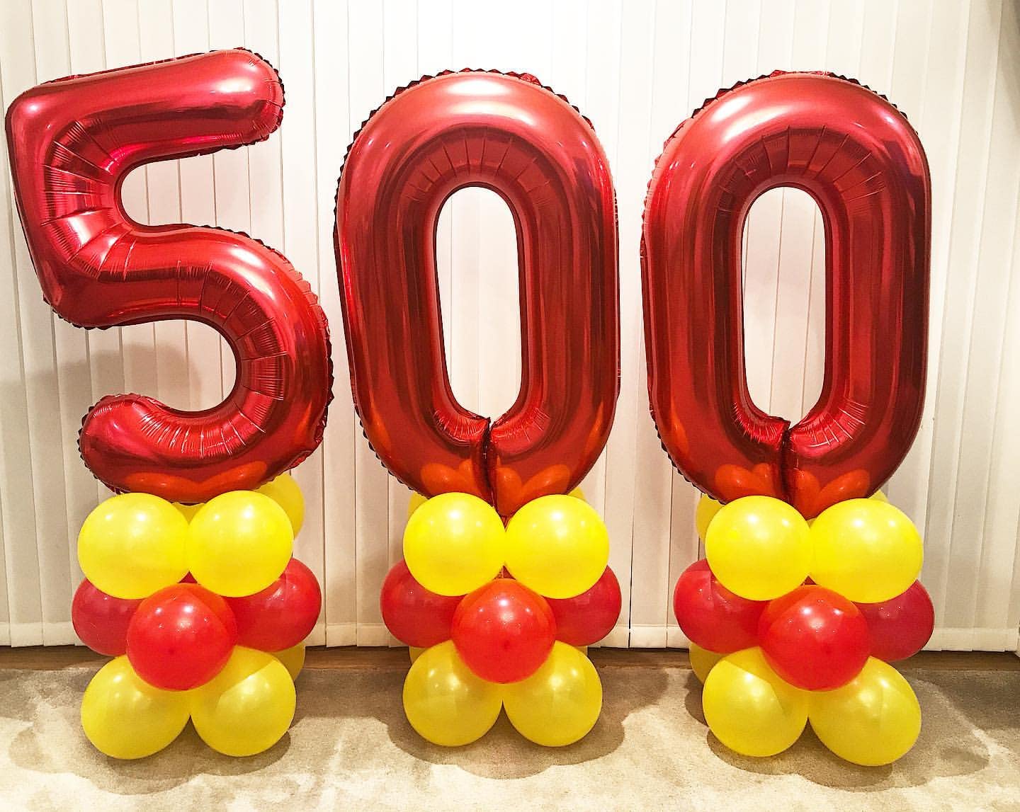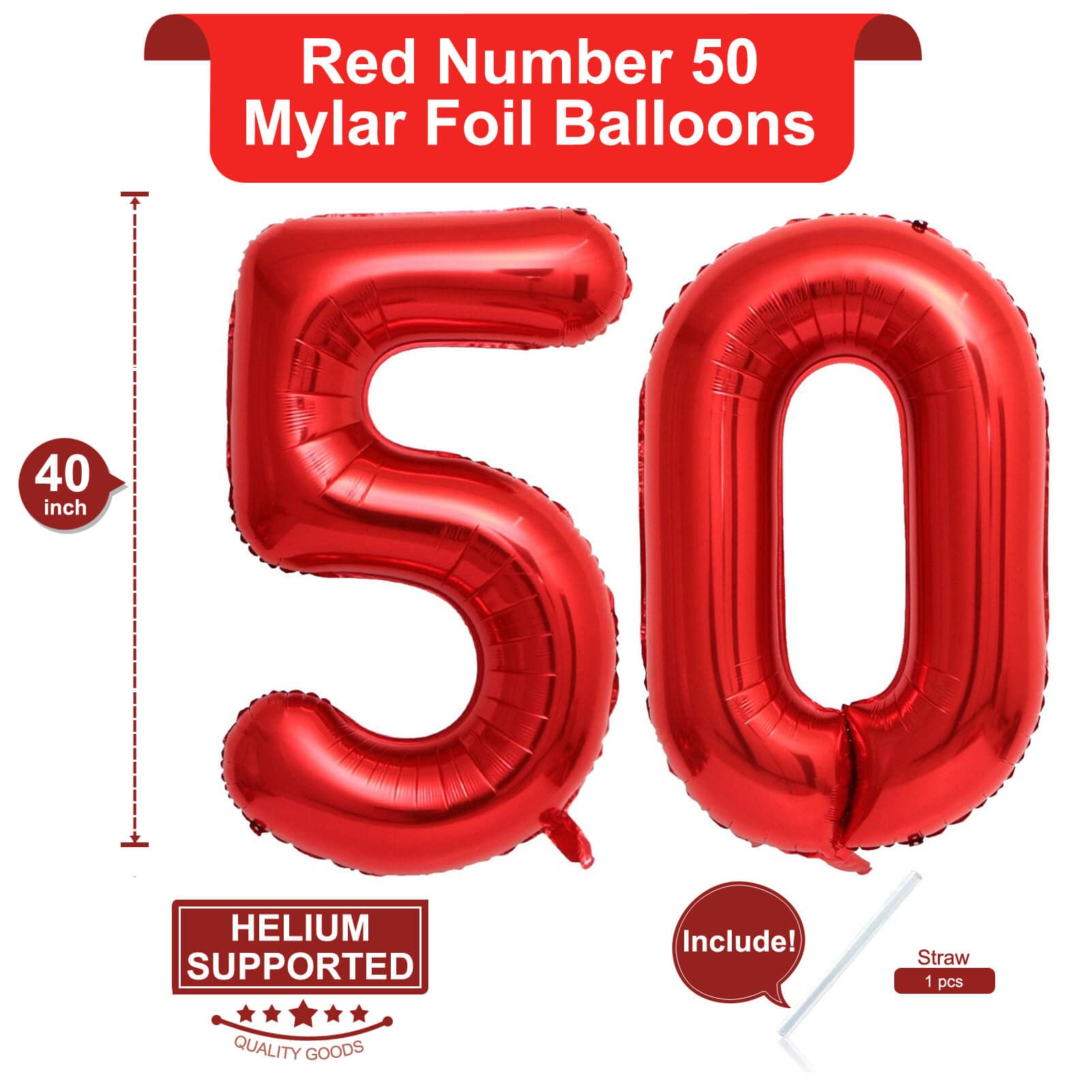- Q: What size are the Red 50 number balloons? A: The Red 50 number balloons are 40 inches in size, making them a striking addition to any birthday or anniversary celebration.