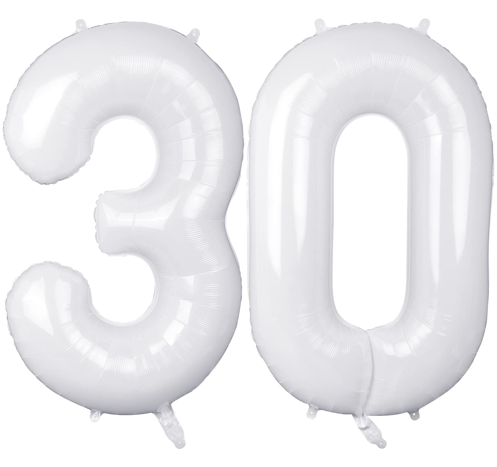 40 Inch White 30 Number Balloons, Jumbo Foil Balloons For 30Th Birthday Party Decorations Supplies / 30Th Anniversary Event