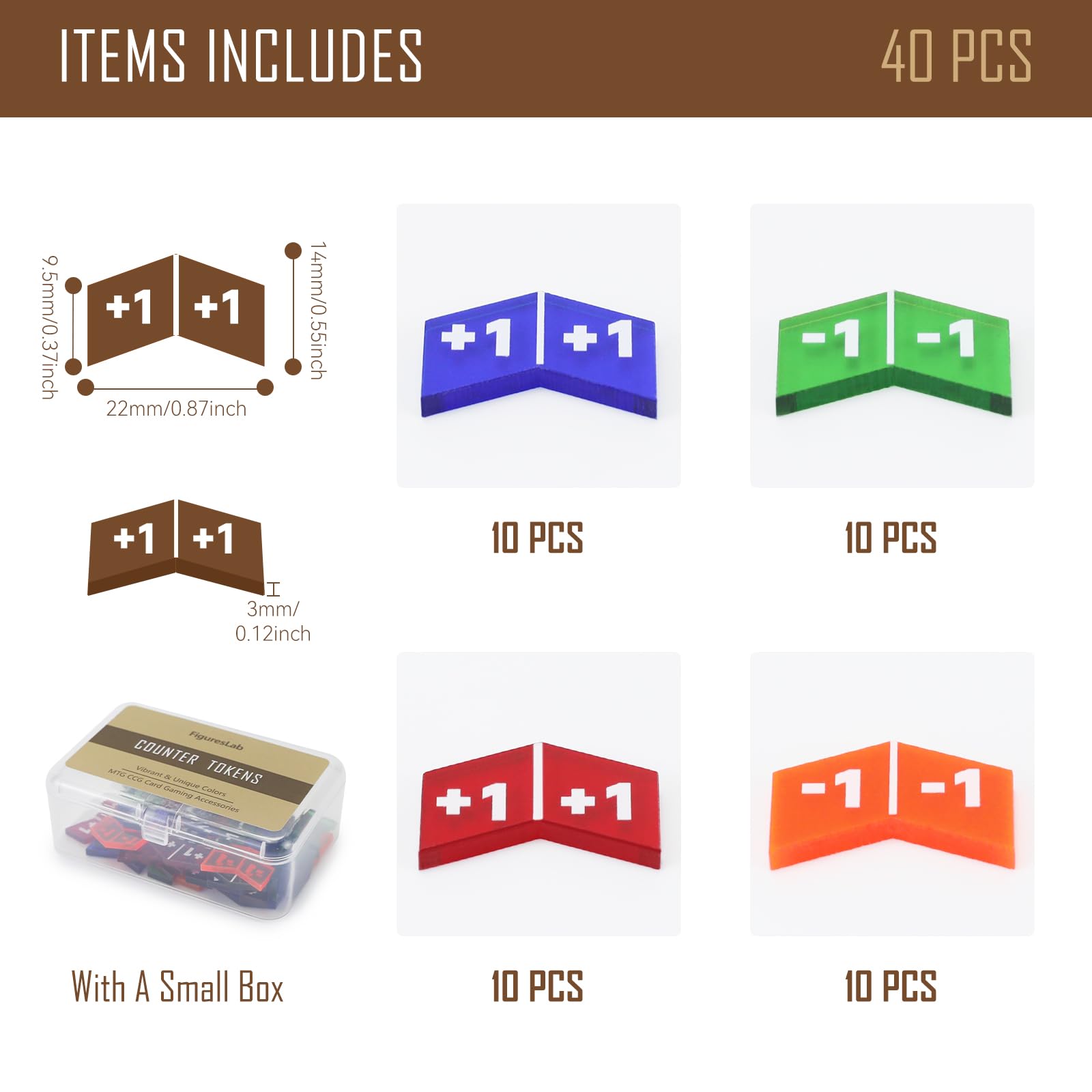 40Pcs Colorful Mtg Life Counter Tokens, Magic Plus 1 Counters Token Creature Stats Or Loyalty Counters For Mtg Ccg Card Gaming A