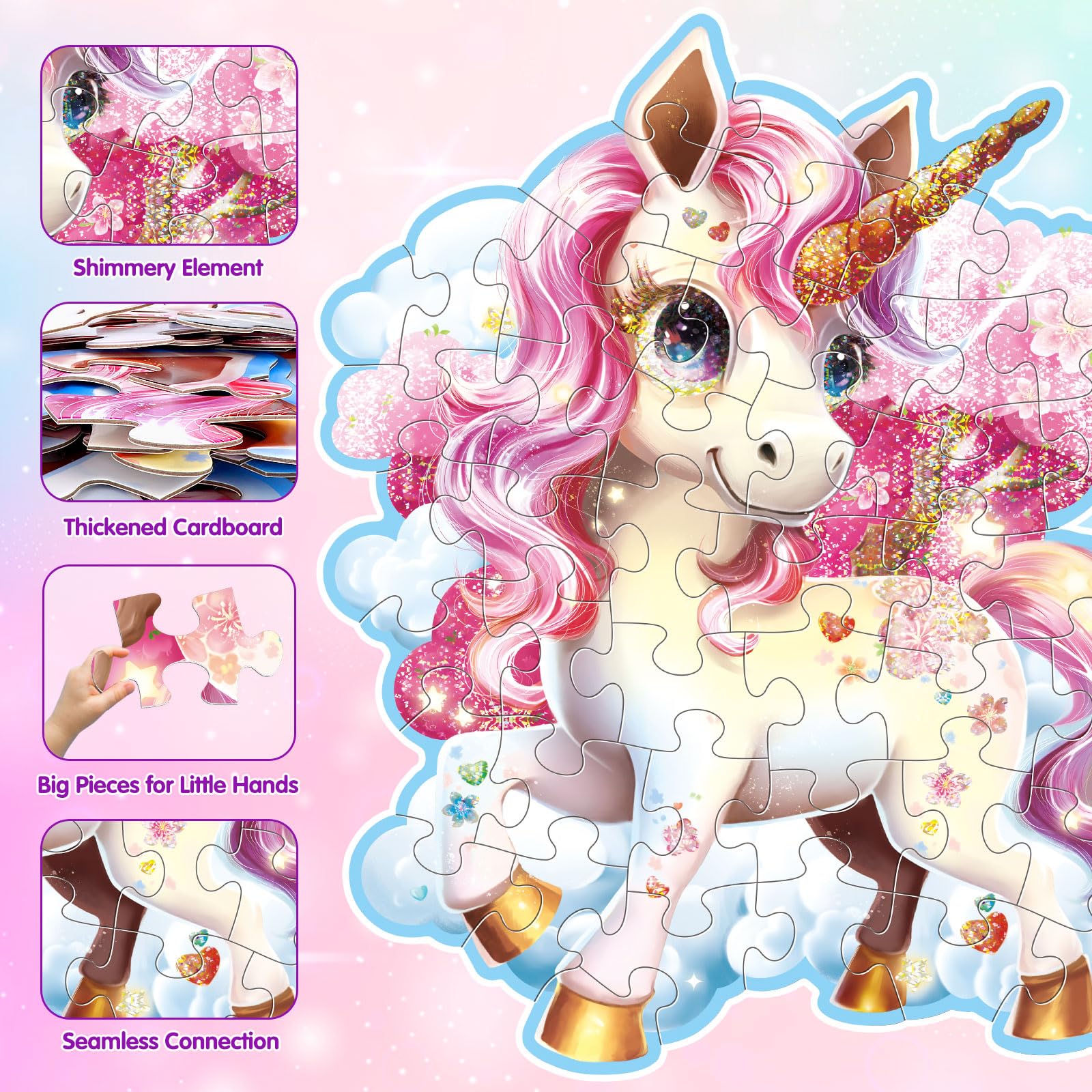 View compare45Pcs Shimmery Unicorn Floor Puzzles For Kids Ages 3-5, Jumbo Jigsaw Puzzles For Kids Unicorn Puzzle For Toddlers Age 3+ Year Ol