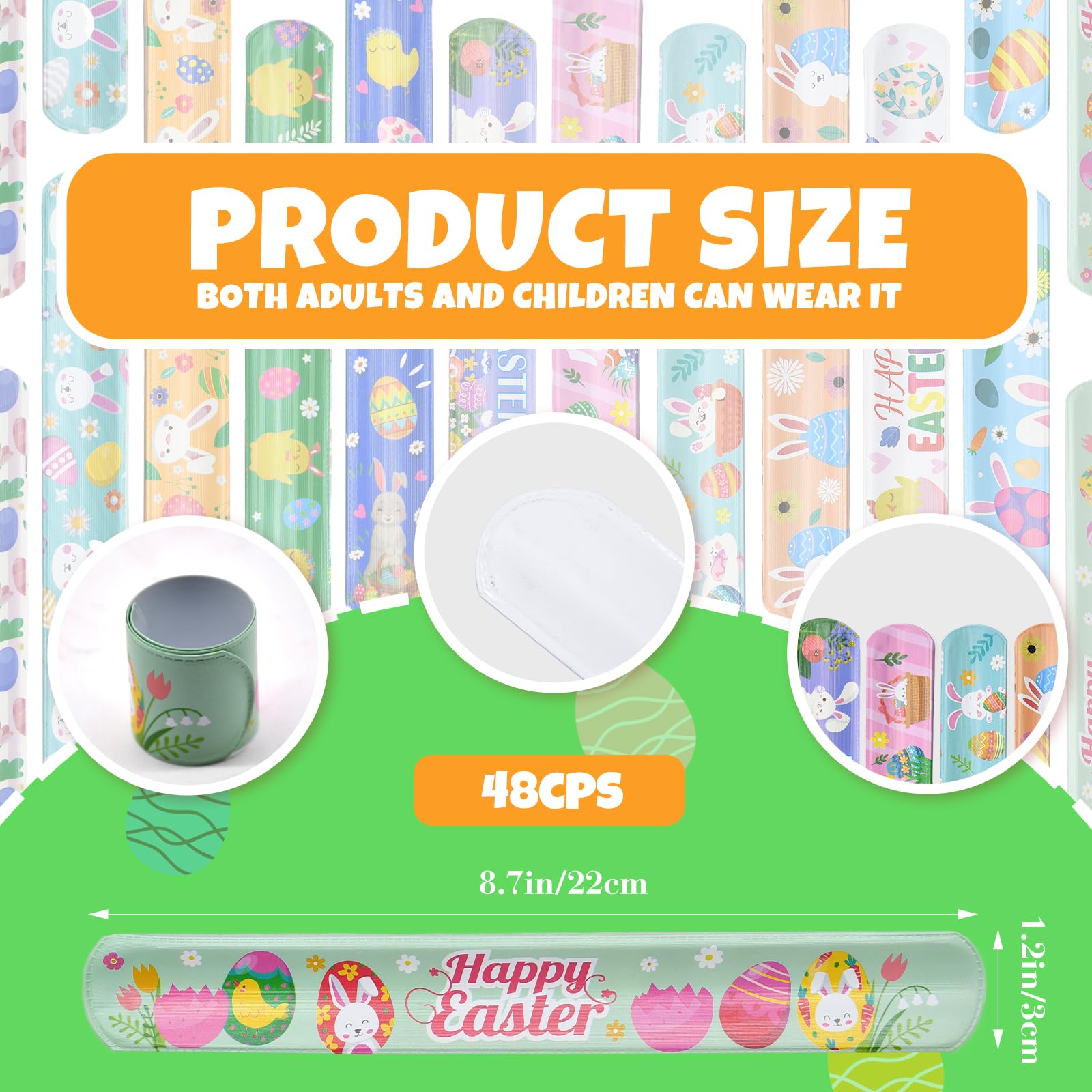 48 Pieces Easter Slap Bracelets Bulk Party Favors for Kids - 12 Designs Spring and Easter Themed Snap Bands, Classroom Exchanges