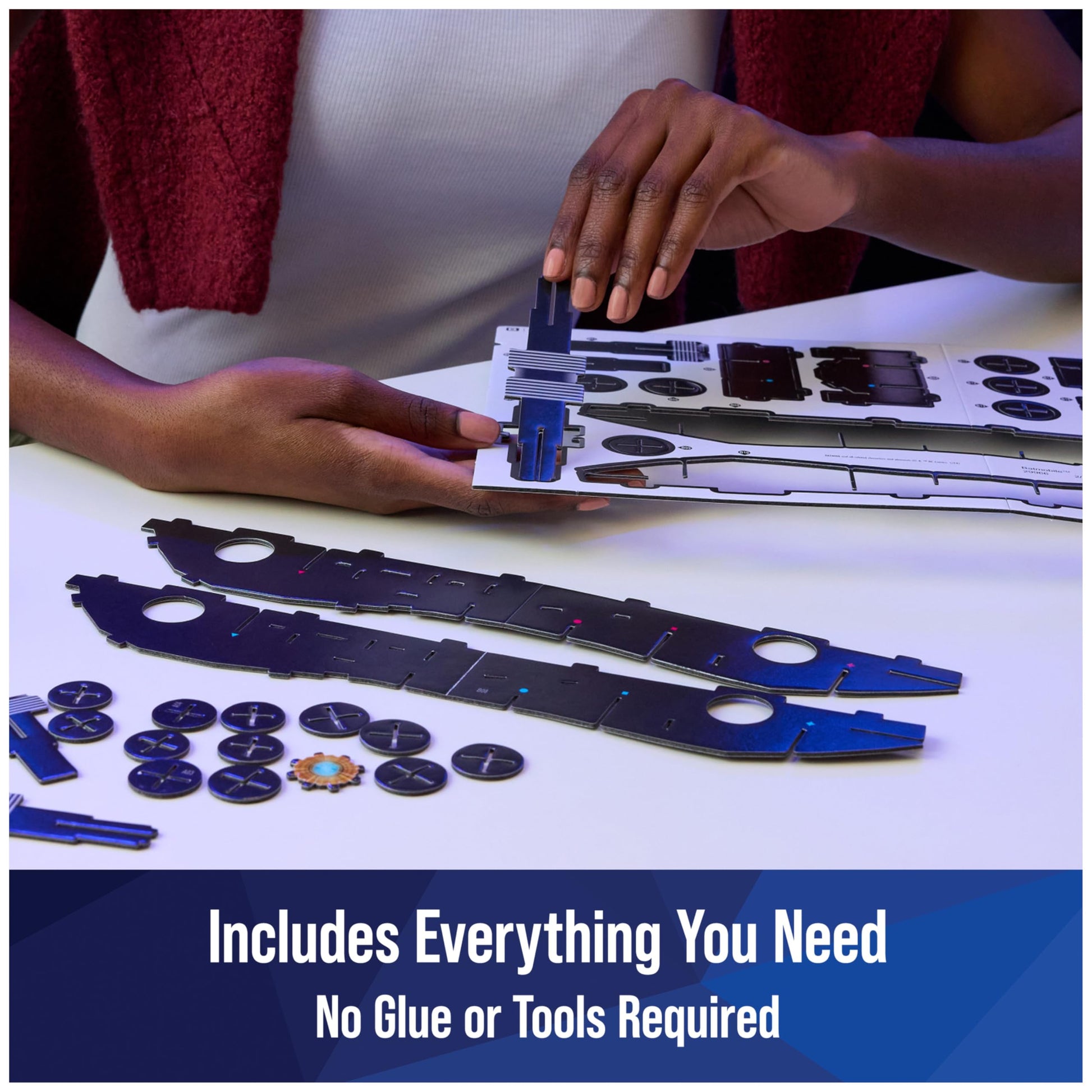 This 4D Build Retro Batmobile is beckoning to be displayed on your shelf! Embark on a vigilante adventure with our 3D puzzles from DCs Batman. This 4D Build Batmobile toy includes a stand for when its complete! You get 8 sheets with 202 detailed punch-out pieces and easy-assembly instructions. No puzzle glue or tools required! The Retro Batmobile measures 14.5 in x 6.3 in x 3.5 in (37 cm x 16 cm x 8.8 cm). Perfect for your home- bedroom decor game room decor or with your Batman toys- display your model kit with pride. For new or young fans of Batman and DC Comics this puzzle makes the perfect present for any teen superfan. And for the old fans of the original superhero toys it is the perfect mature-themed toy as well. 4D Build makes fantastic birthday gifts for men and gifts for him! Whether you love the Dark Knight or Batman the animated series this 4D Build puzzle is for you. Check out our other 4D Build toy building sets for more Batman Harry Potter and Marvel toys for ages 14 and up. Get out your Batman action figure and start building!