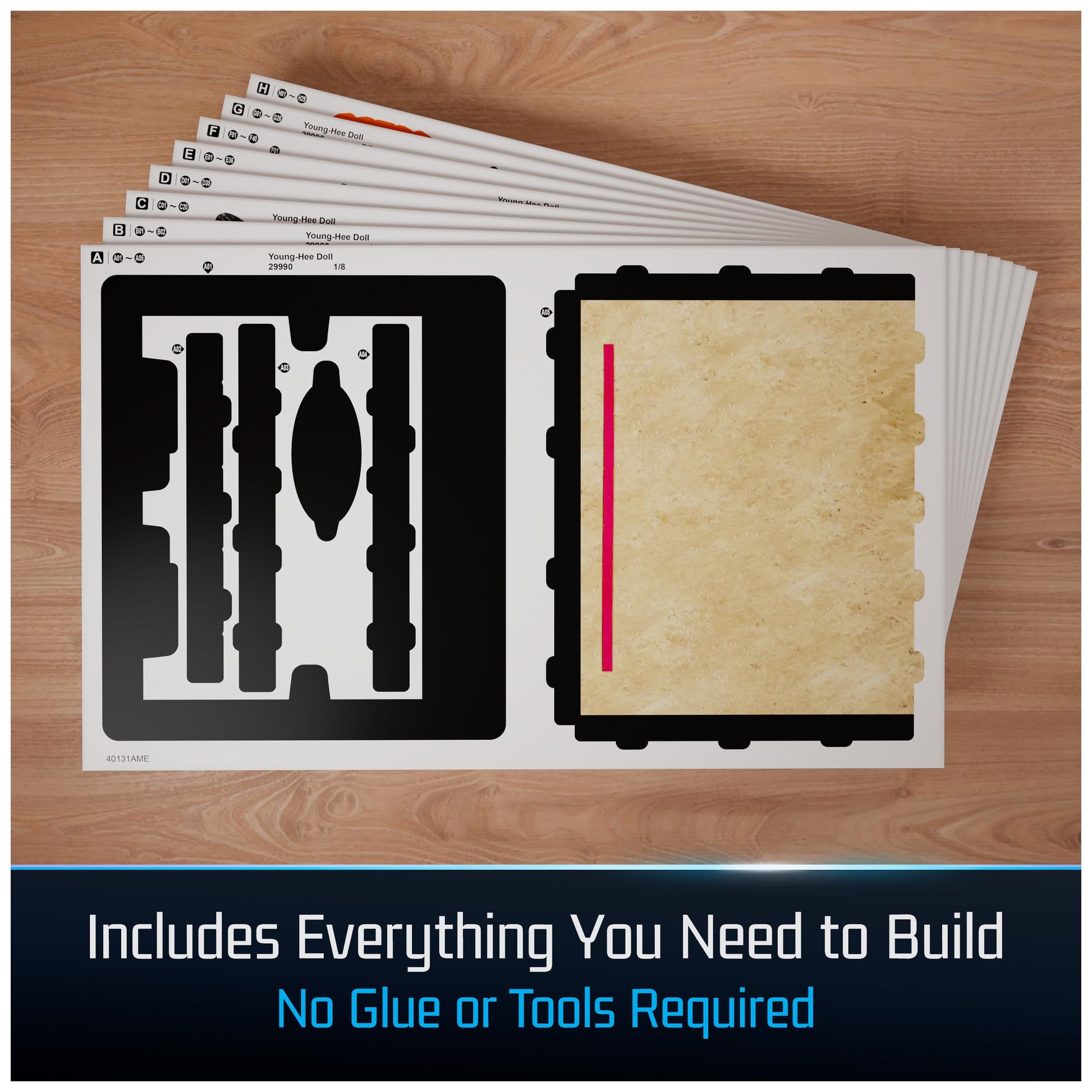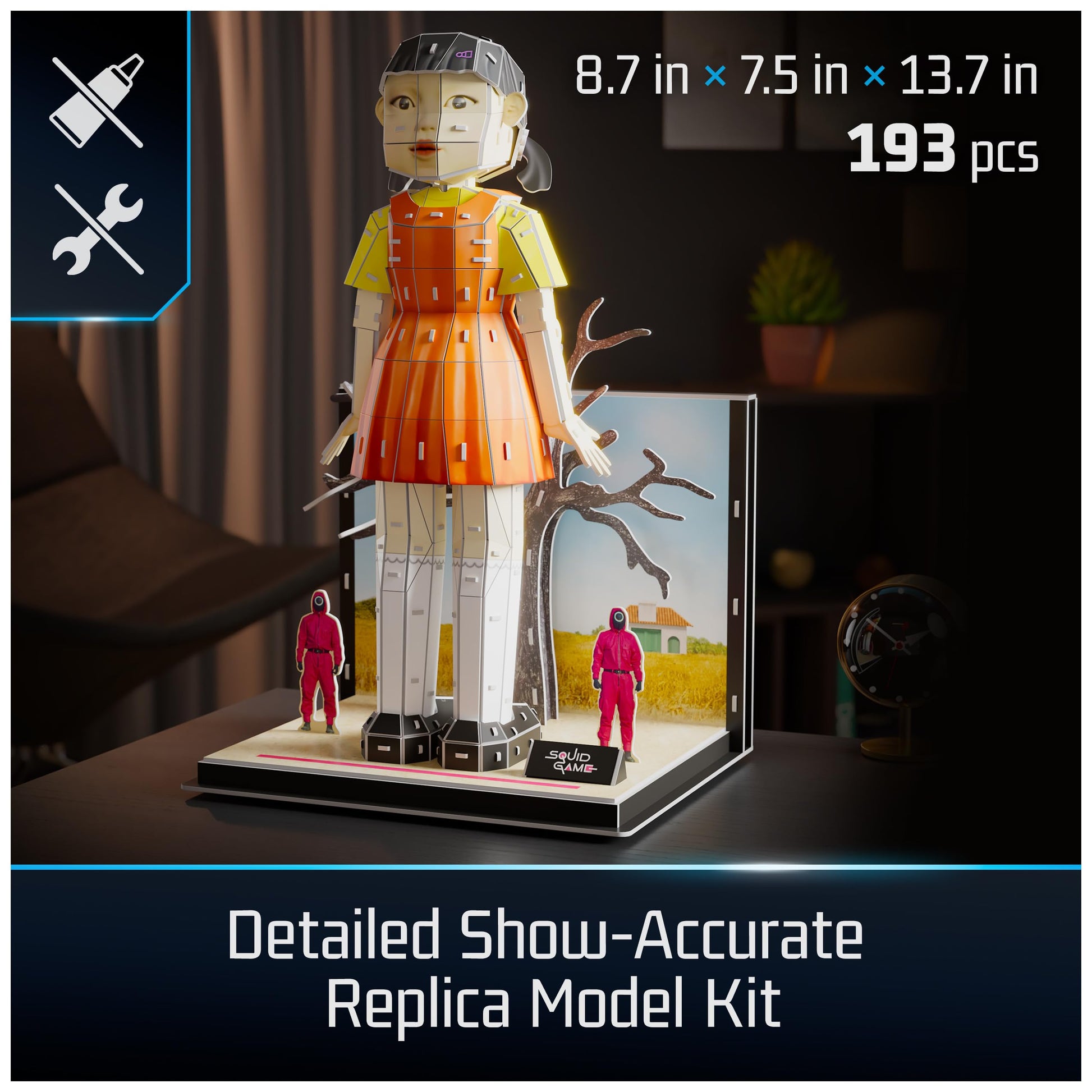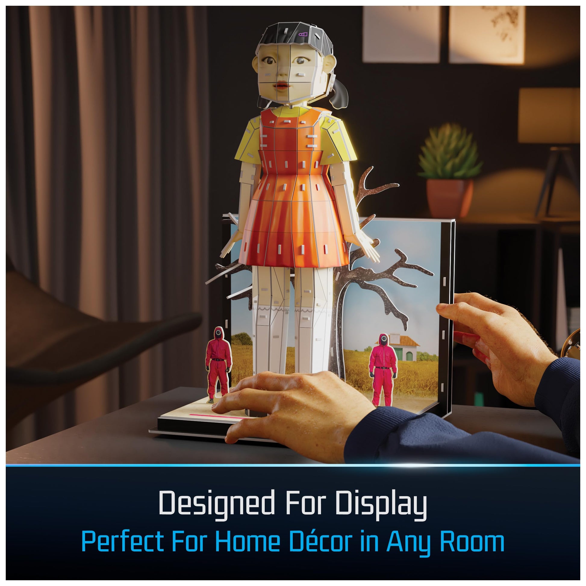 Detailed Replica: Choose to enter the Squid Game & go on an action-packed building adventure with a show-accurate shelf decor piece. This 4D Build Squid Game Young Hee Doll puzzle model kit has show-quality intricate detail & a stand | Easy To Assemble: You get 8 sheets with 193 detailed durable punch-out pieces & instructions to complete this satisfying craft challenge. No tools required | Designed For Display: An authentic addition to your model kits collection ideal for room decor office decor & bedroom decor. This Squid Game Young Hee Doll measures 8.7 in x 7.5 in x 13.7 in (22 cm x 19 cm x 34.7 cm) | Shop Fun Games: Love your 4D Build model kit & need more fun? Spin Master toys & games offer a range from kids games to board games for mature-themeds puzzles for mature-themeds & kids puzzles | Spin Master Toys & Games: Looking for kids games yard games & card games for grown ups kids or teen? Shop everything from family game night travel games puzzles for mature-themeds & family games | Includes 8 Sheets Instructions | Covered by the Spin Master Care Commitment. See below for full details