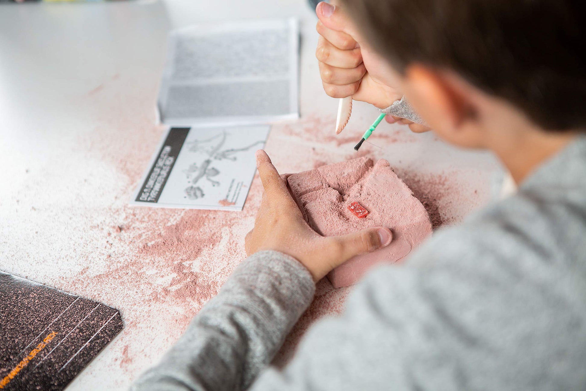 - Q: How do you excavate the dinosaur skeleton in the kit? A: To excavate the dinosaur skeleton, use the specially designed digging tool provided in the kit to carefully break apart the plaster 'rock' and reveal the bones inside. The included instructions will guide you through the process.