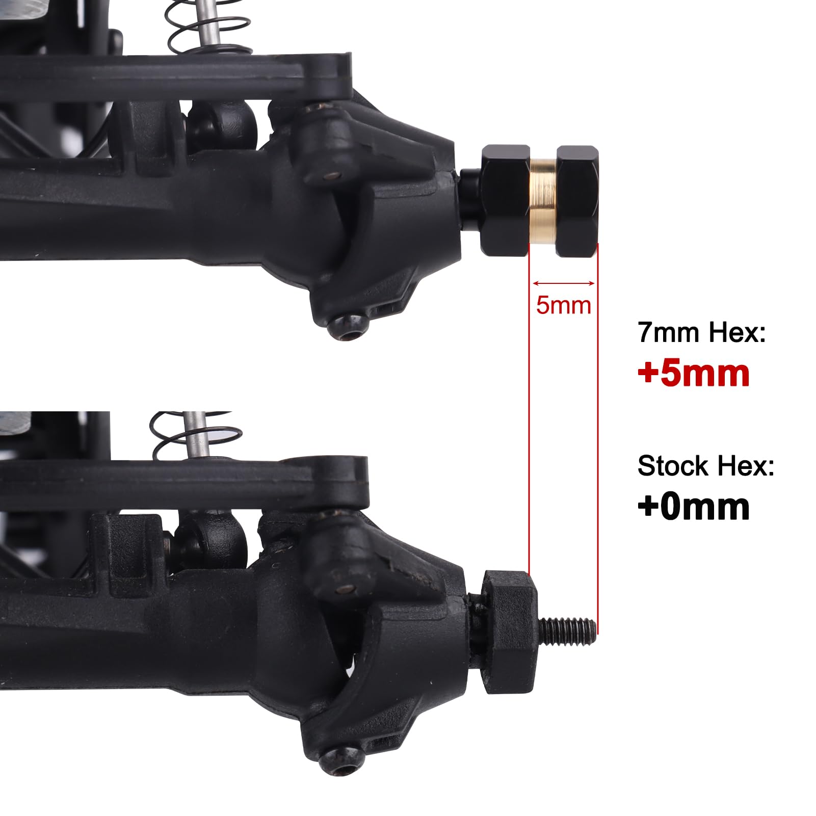 - Q: What are the benefits of using the 4pcs Brass Extended 7mm Hex Wheel Hubs for SCX24? A: The 4pcs Brass Extended 7mm Hex Wheel Hubs enhance your SCX24's performance by increasing the track width. This provides improved stability and balance, reducing the risk of rollovers during rock crawling and off-road adventures.