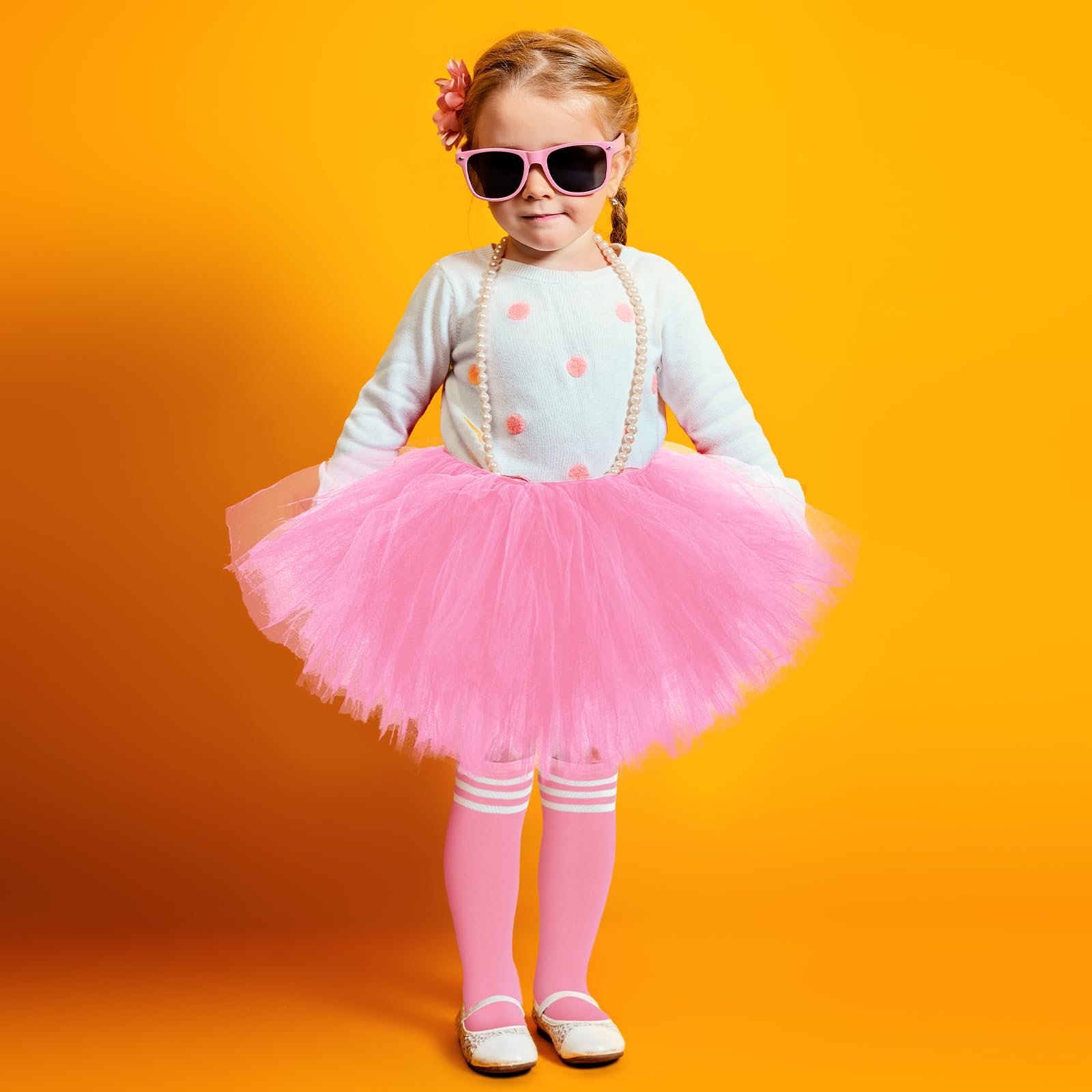 5 Layered Tutu Skirt For Kids Tulle Tutu Skirt With Tube Socks Princess Runners Costumes Cosplay For Girls Kids(Light Pink,Kid)