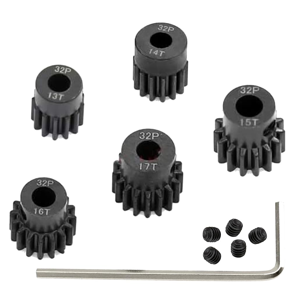 5-Pack Black Steel Metal 32P 5mm Pinion Motor Gear Sets 13T 14T 15T 16T 17T Compatible with HPI Kyosho Losi Axial Tamiya 1/8 1/1