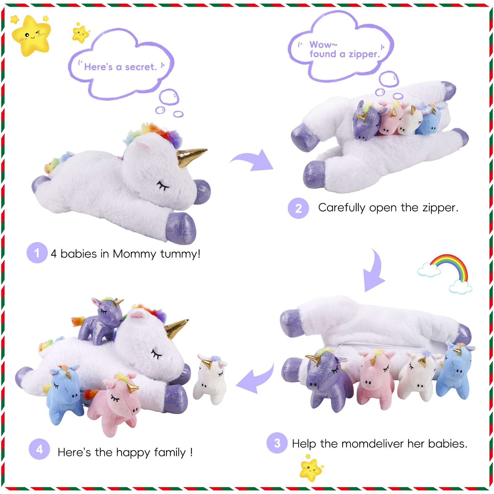 Soft Toys For Kids: 4 Cute Baby Unicorns In Mommy'S Belly, Open The Zipper You Can See That, What A Surprise! The Girls Absolutely Love Them And Can'T Wait To Cuddle And Play With Them. This Plush Toy Set Comes In A Delicate Gift Box, Perfect For A Gift For Kids Ages 3 4 5 6 7 8.