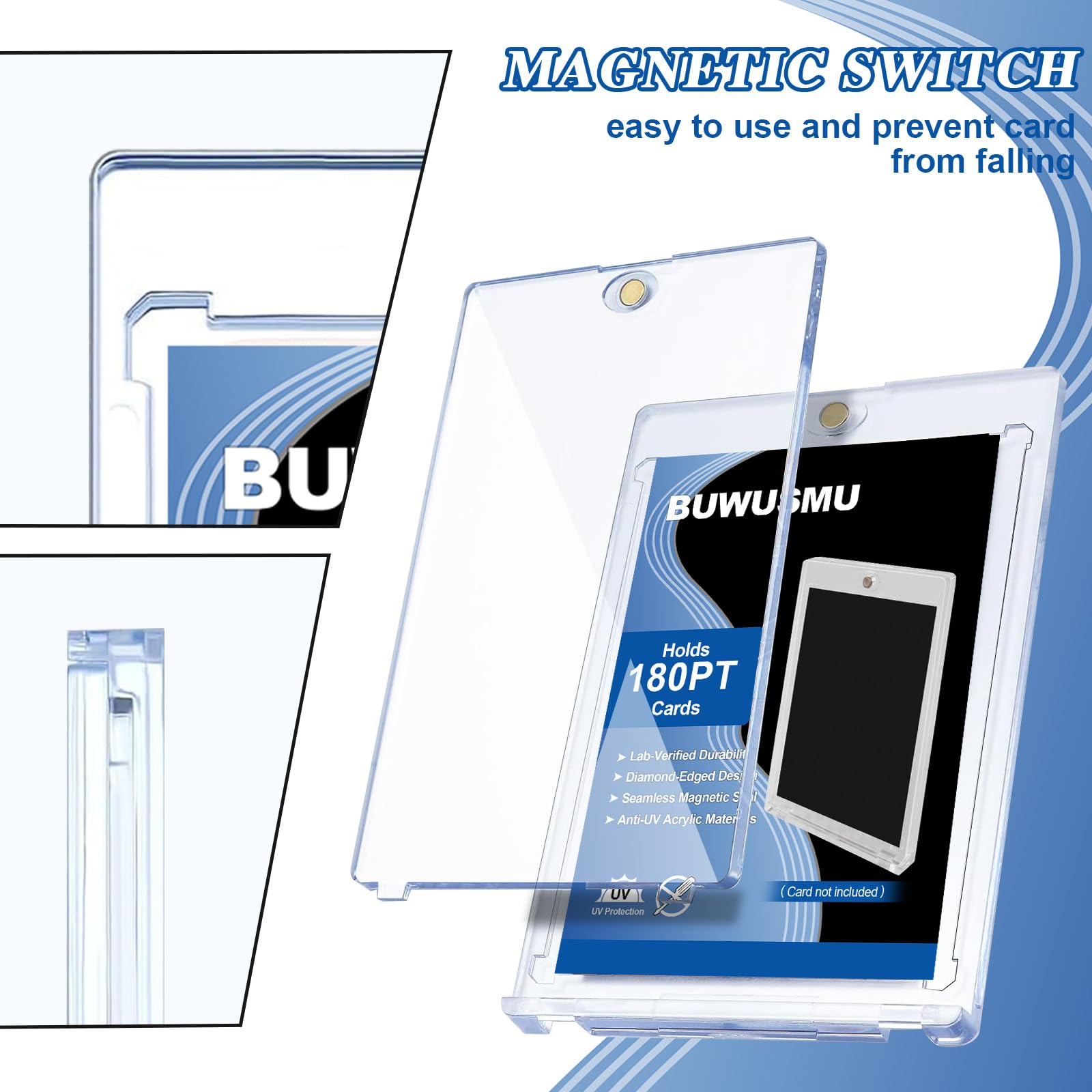 50 Pcs 180 Pt Acrylic Magnetic Card Holders One Touch Clear Card Protectors Hard Plastic Magnetic Card Cases for Sports Baseball Trading Card Storage and Display (2.5 x 3.54 Inch)