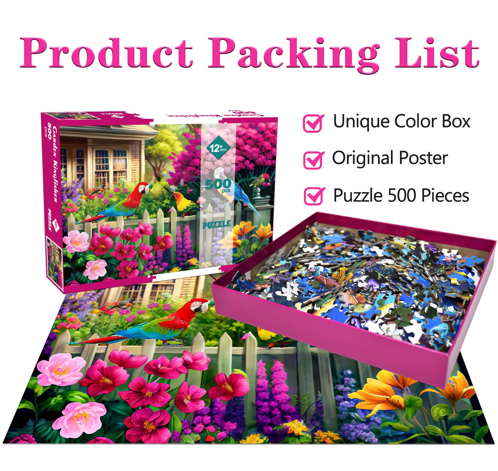 View compare500 Piece Jigsaw Puzzle for mature-themeds -Flowers & Birds Jigsaw Puzzles 500 Pieces Puzzles for mature-themeds-Finished Size 19.3 x 13.7