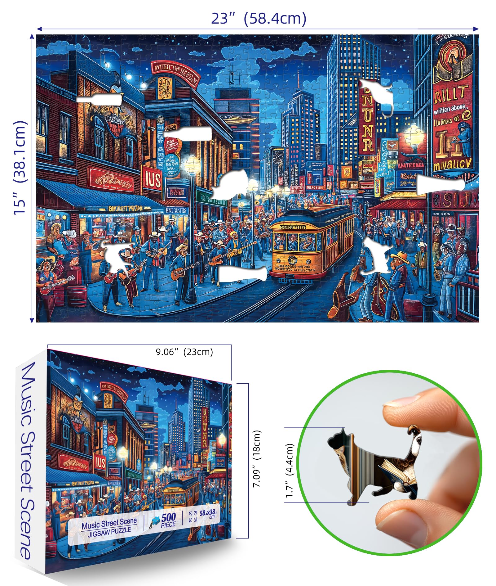 500 Piece Jigsaw Puzzles For Adults, Street Vintage Night Scene With Musicians Puzzle For Adults - Hard Unique Difficult Challen