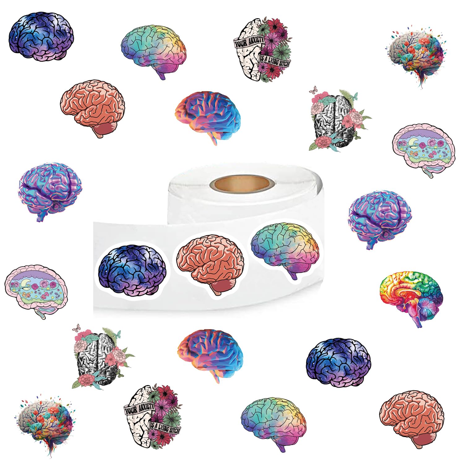 500 Pieces(10 Patterns)Brain Mental Health Stickers Colorful Fashion Graffiti Adhesive Seals For Kids Teens Adults Water Bottles
