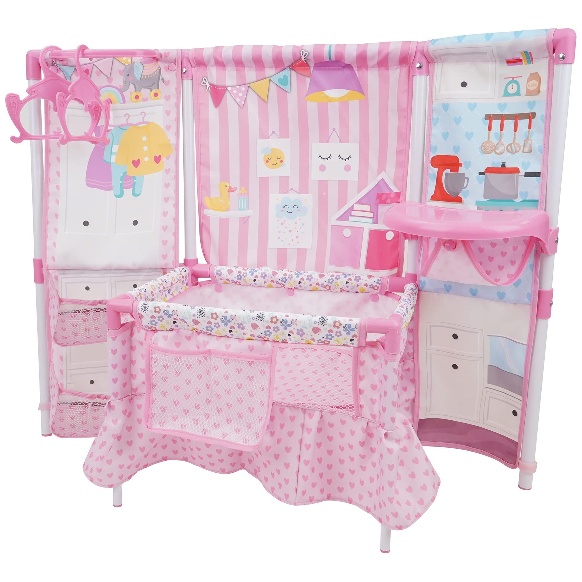 View compare509 Crew BnB Pink Doll Furniture Set - 14 Baby Doll, Built in Highchair & Play Yard, Accessories, Kids Pretend Sleep Play Set