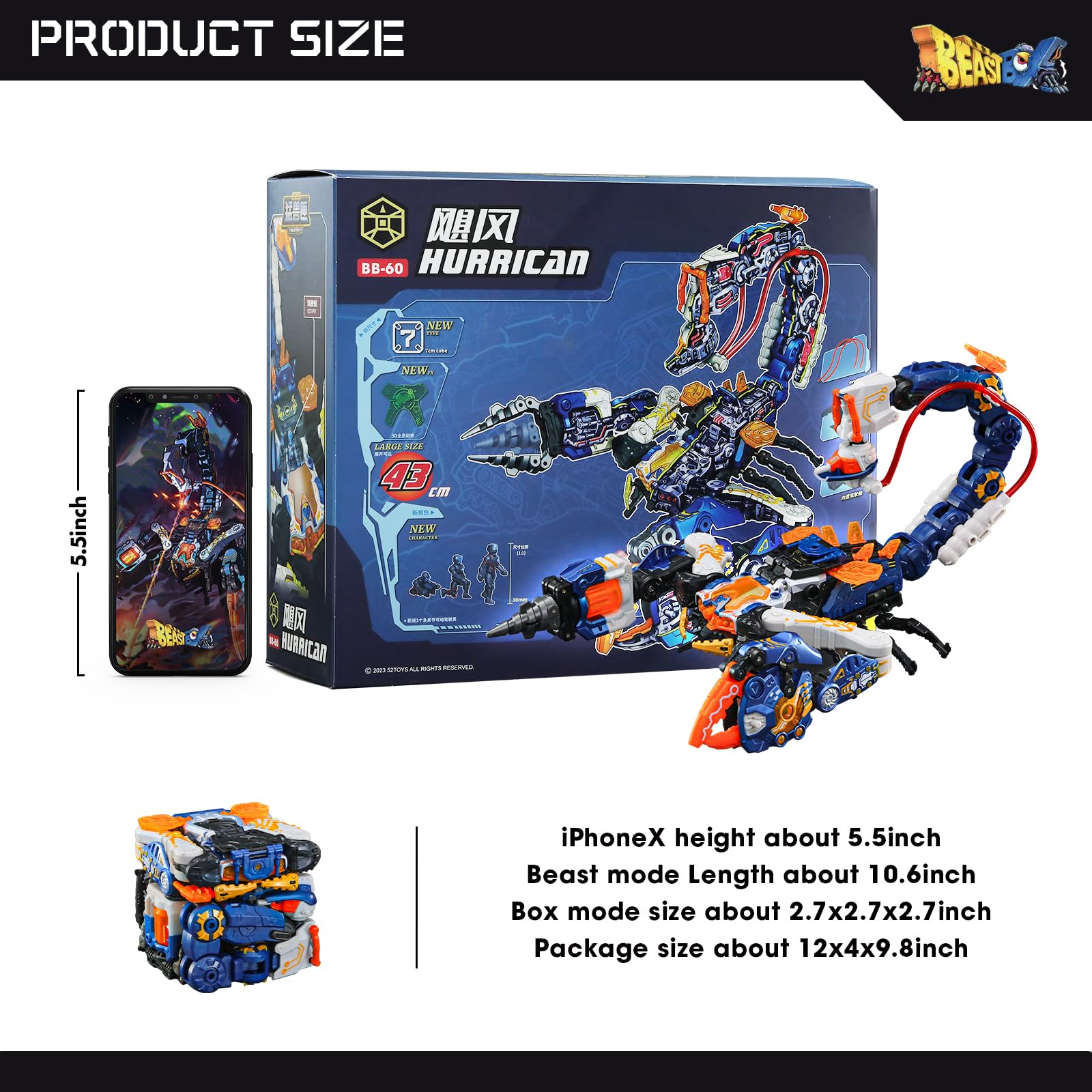 - Q: How do I transform the BEASTBOX BB-60 Hurrican from cube to mecha mode? A: Transforming the BEASTBOX BB-60 Hurrican is easy and can be done in just a few minutes by following the elaborate instruction manual included in the package.