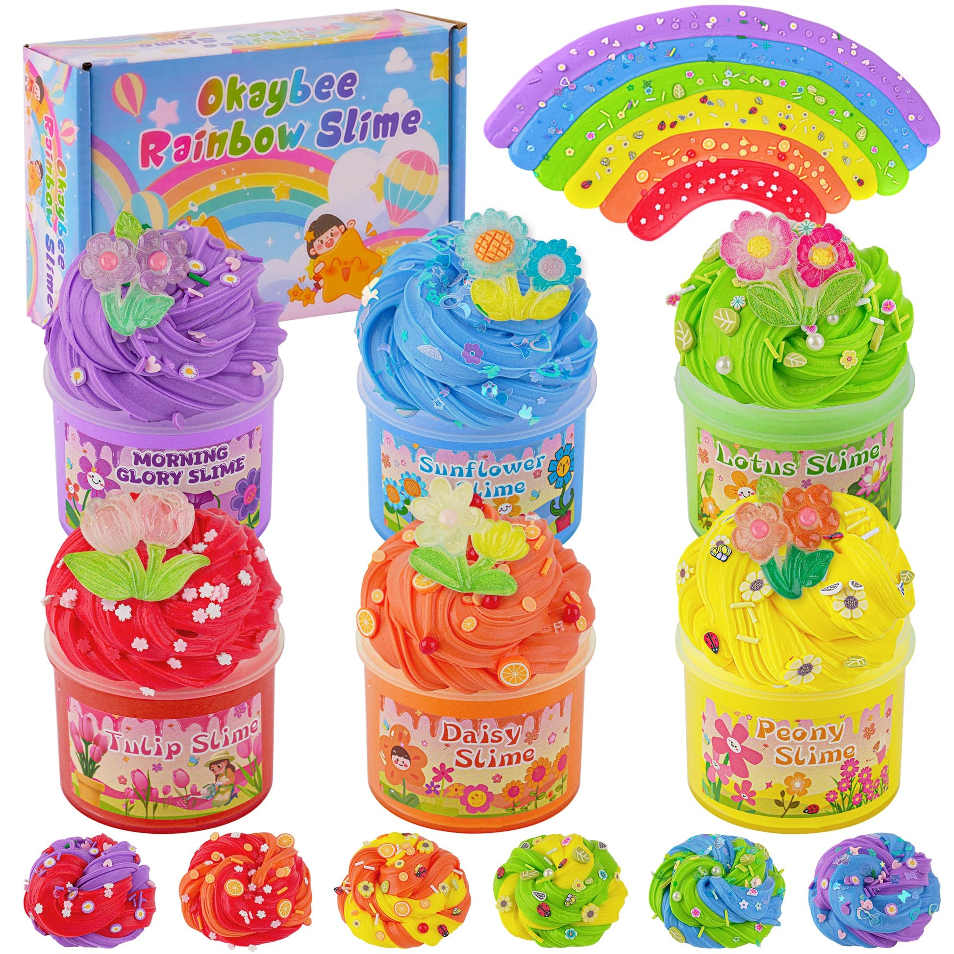 6 Pack Butter Slime Kit, Rainbow Slime For Kids, With Flower Slime Charms & Add-Ins, Slime Party Favors Sensory Toys, Holiday Bi