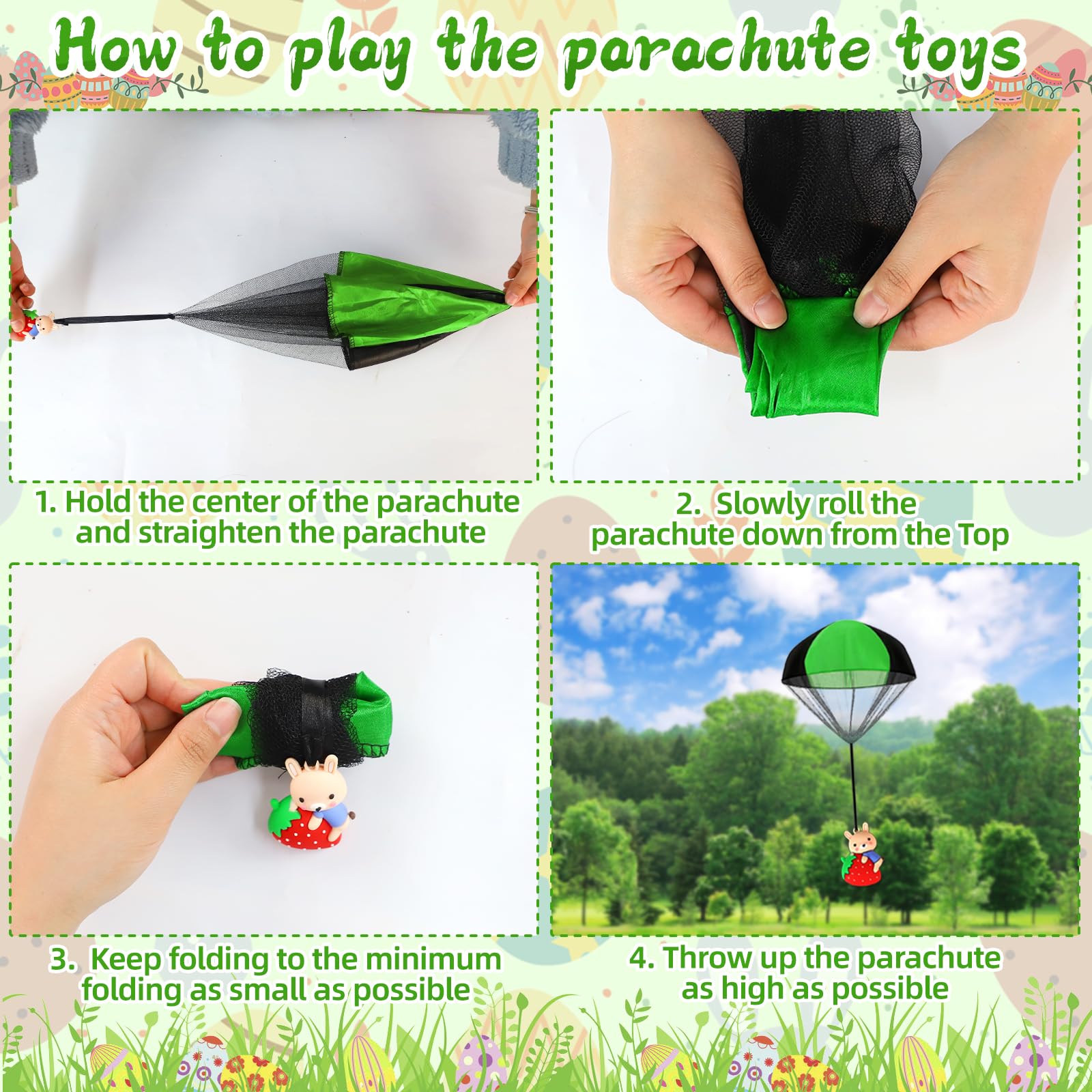 6 Pack Prefilled Easter Eggs with Parachute Inside with 35 Pcs Easter Temporary Tattoos Easter Basket Stuffers Easter Egg Fillers Gifts Package included : 6 packs colorful Easter eggs 6 packs parachute 35 pieces Easter tattoos stickers (6 sheets) How to use? Step 1 : Pull the center point of the parachute surface to straighten it Step 2 : Roll up from the top STEP 3 : Compress the parachute into a minimum size STEP 4 Throw up it into high air. Prefilled Easter eggs for toddlers with parachute are made of premium nylon material, great for long-term use. These parachute are perfect for Easter basket stuffers, Easter basket fillers, Easter gifts,Easter goody bag fillers,Easter pinata and more.