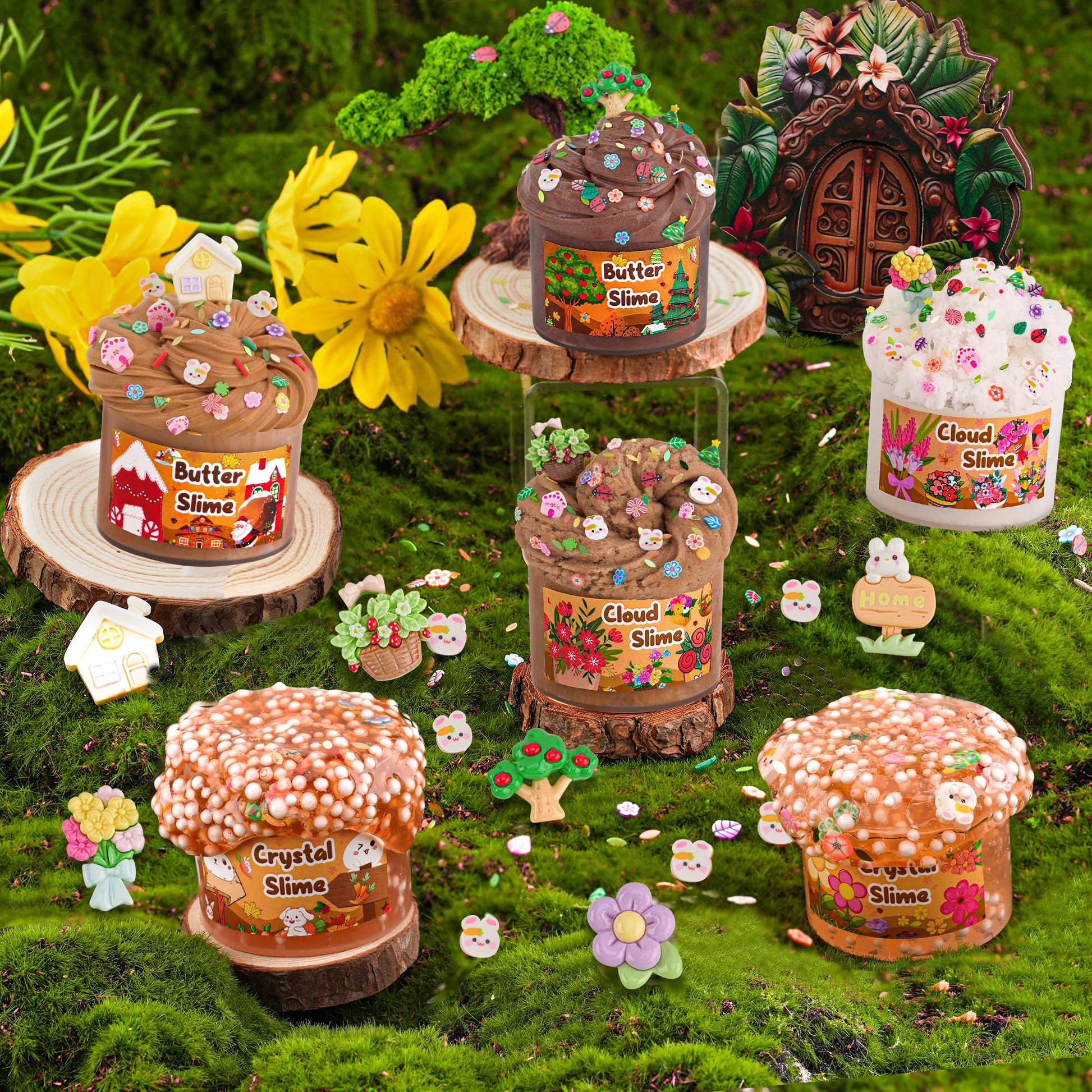 View compare6 Packs Gradient Brown Slime Kit - Cloud Slime, Butter Slime & Clear Slime, Crunchy Slime For Kids With Various Slime Add-Ins, Non Stick Slime Party Favors For Girls & Boys, 360Ml Kids Slime (Garden)