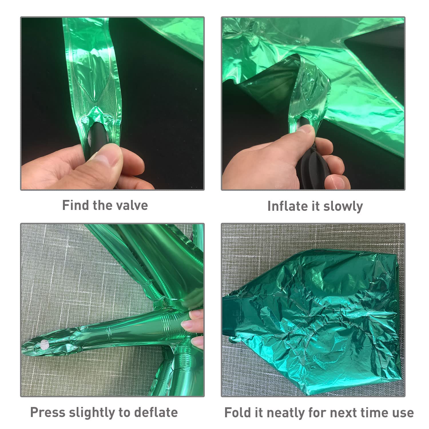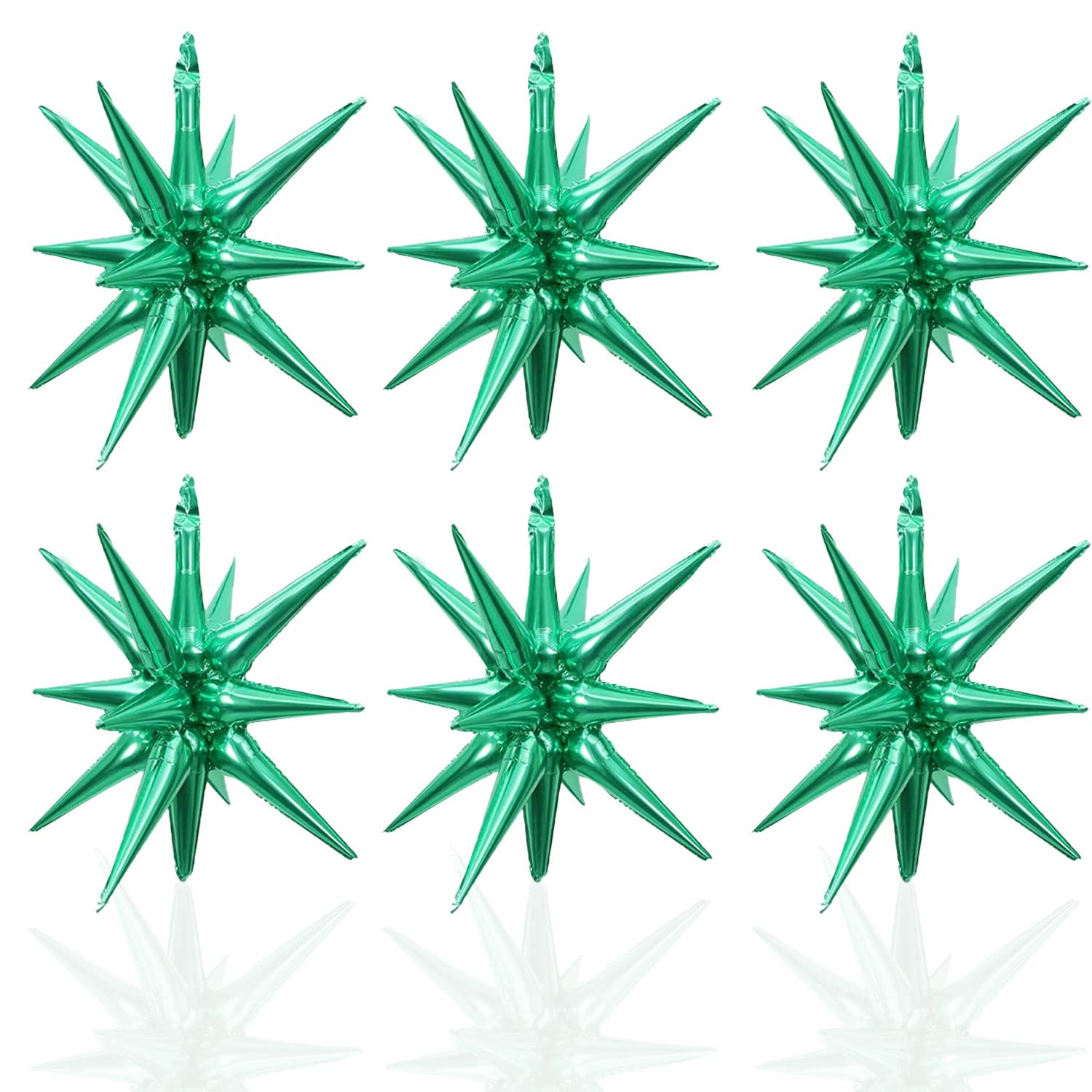 6 Pcs Green Star Foil Balloons One-Piece 14-Pointed Star Balloons 4D Starburst Cone Mylar Balloons 22Inch Christmas Birthday Wed