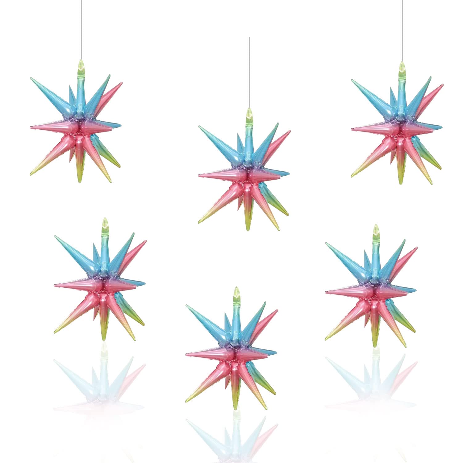6 Pcs Multicolor Star Foil Balloons One-Piece 14-Pointed Star Balloons 4D Starburst Cone Mylar Balloons 22Inch Christmas Birthda