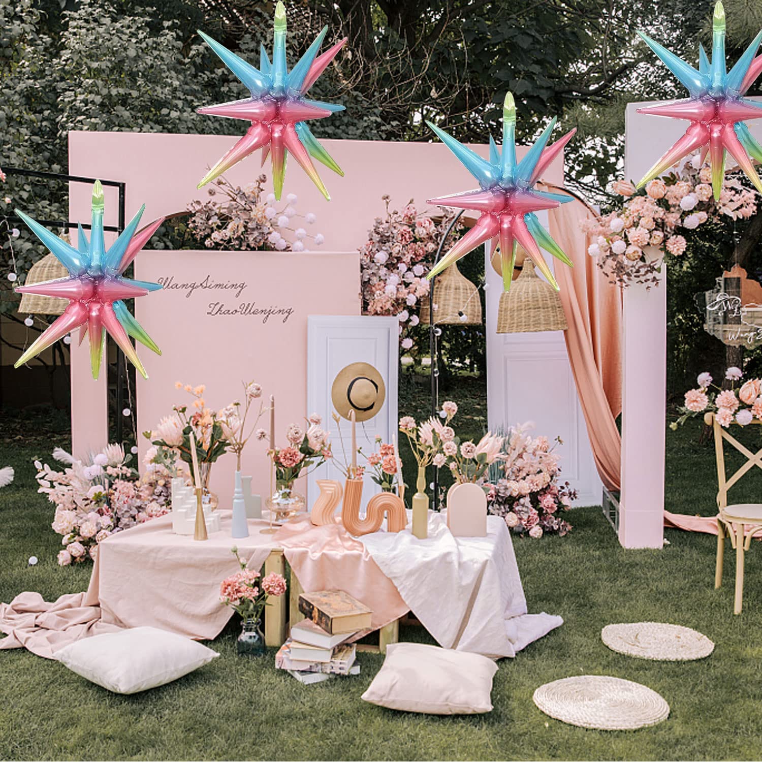 6 Pack 14 Point Foil Cone Balloons Starburst Cone Mylar Balloons Large Explosion Star Balloon For Wedding Birthday Party Photo Booth Decoration Supplies, Multicolor One-Piece 14-Pointed Star Explosion Balloons 6 Pcs Product Specification: Material: Aluminum Foil. Package Contents: 6Pcs Multicolor Explosion Star Balloons Size: Each Foil Cone Balloon Measures Approx 22 Inches After Inflation Easy To Use: Use The Inflator To Pump The Foil Disco Ball Balloon To 80% By Air Or Helium, When Inflation Being Completed, Pull Out The Inflator And Pinch The Inflation Inlet Flat. The Air Outlet Will Be Automatically Sealed By Its Matched Self Adhesive Glue Of The Balloons Inlets, And No Additional Knots Are Required (Inflator Is Not Included).