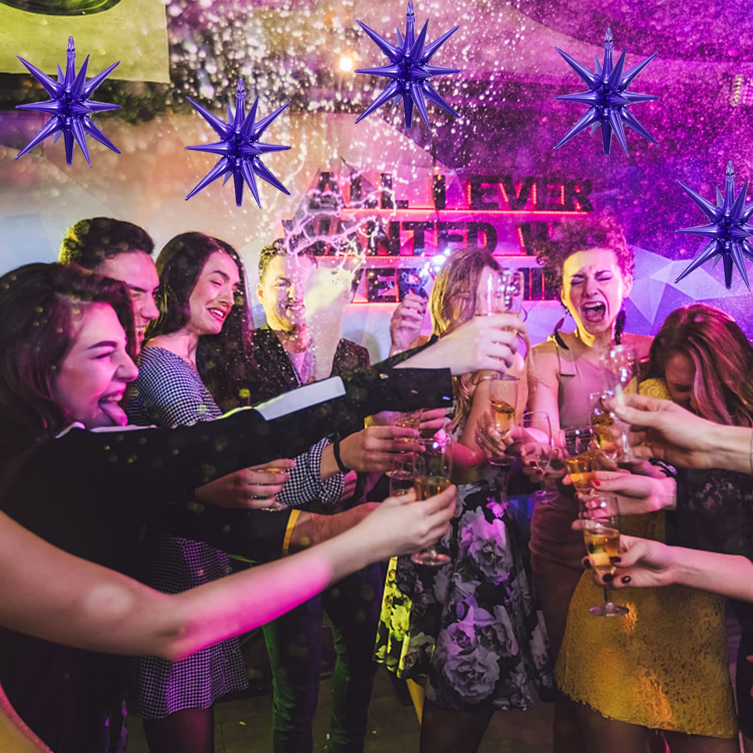6 Pcs Purple Star Foil Balloons One-Piece 14-Pointed Star Balloons 4D Starburst Cone Mylar Balloons 22Inch Christmas Birthday We