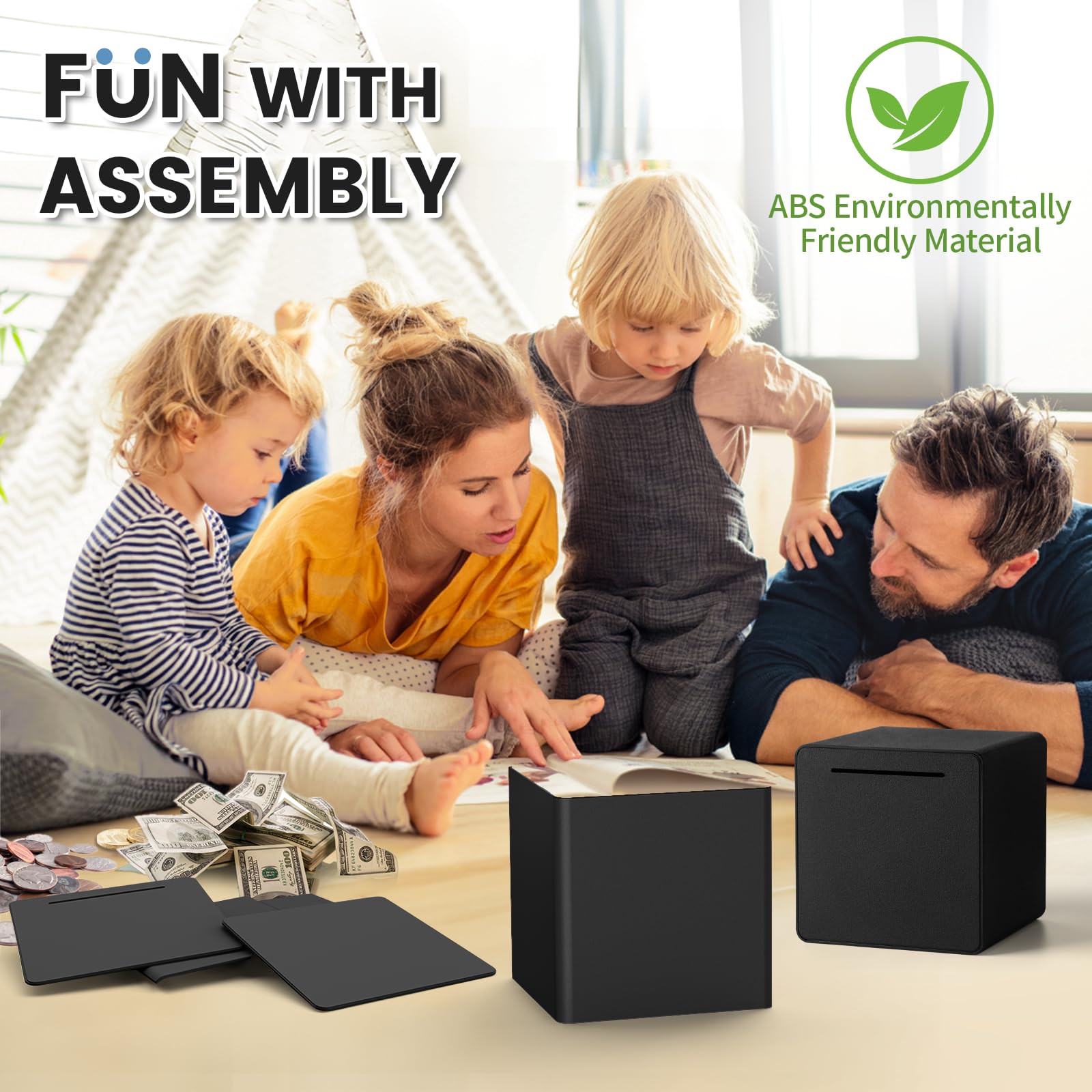 Engaging Assembly Fun: Enjoy a fun and unique experience by assembling your own unbreakable piggy bank - feel sense of accomplishment that comes with your creation. Engage in an activity for kids and mature-themeds alike! | 2024 NEW Piggy Bank: Crafted from ABS plastic material lighter than stainless steel and tougher than acrylic. Accidentally dropped? No worries! As the latest gift for 2024 our indestructible piggy bank is sturdy enough to keep your savings safe | Multiple Colors Available: The 6-inch piggy bank for cash holds up to 4000 coins or 700 bills! Teach kids good habits of saving money. Choose from 7 colors - black pink pinkish-purple blue yellow green grey. Pick your favorite colors mix and match for your personalized piggy bank! | Must Break to Open: Ready to access your money? Break to open the large piggy bank for mature-themeds using tools like a hammer if necessary. PLEASE REMEMBER for this black piggy bank OPEN EQUAL TO DESTROY | Festive Gifting Delight: More than just a money saving box! Ideal as a thoughtful present to bring joy to festivities. The savings bank for real money is a perfect choice when it comes to choosing gifts for the New Year Christmas and Valentine's Day