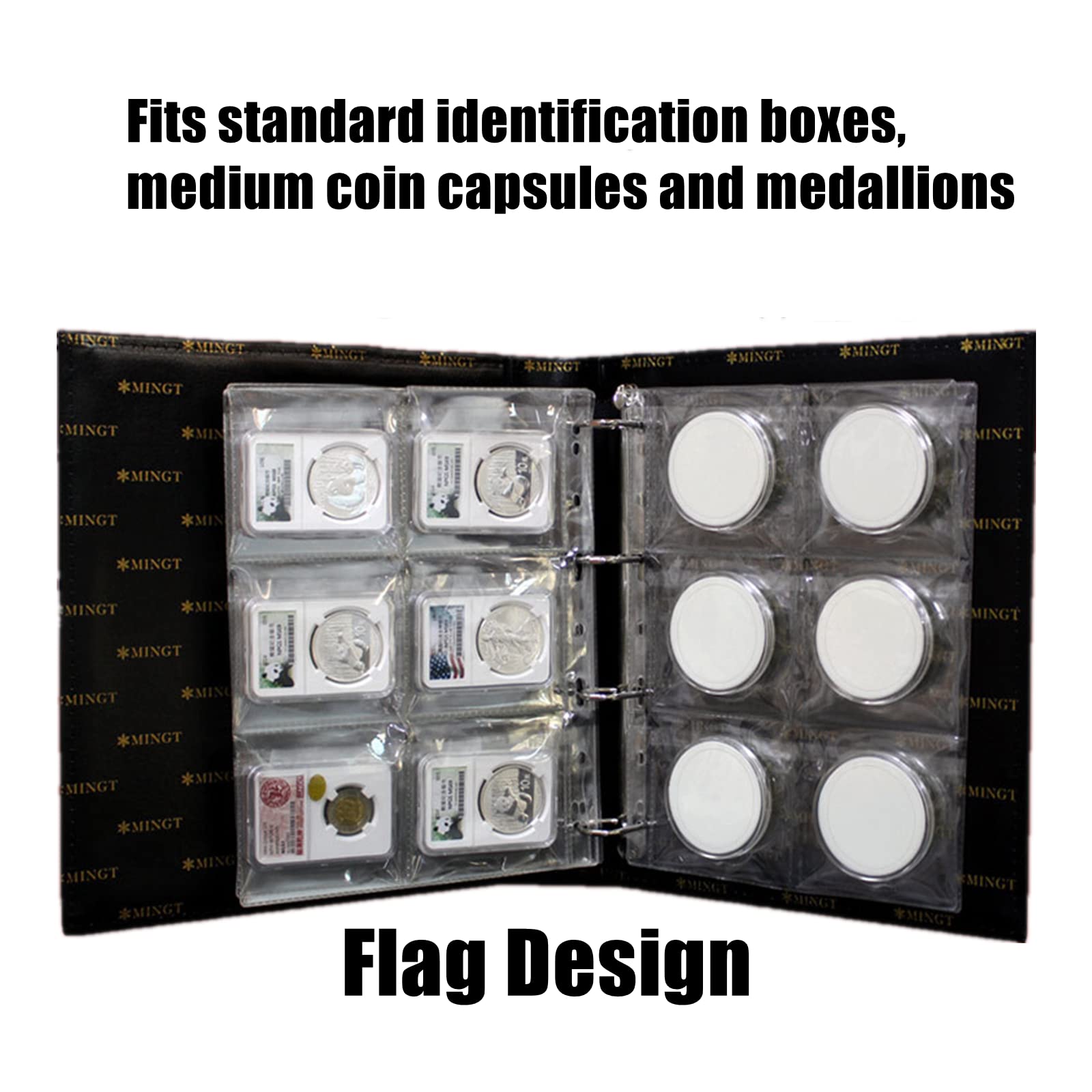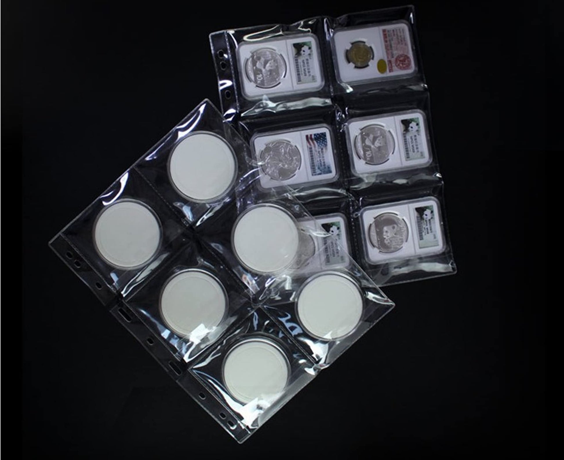Pocket Size: 3.85 '' x 3.26 '', 6-pocket coin storage page.Flap design.Package includes: Coin Collection Pages 10 sheets, 60 pockets.International Standard : 9-hole coin page, fit most binders such as European 4 ring ,US 3 ring etc.