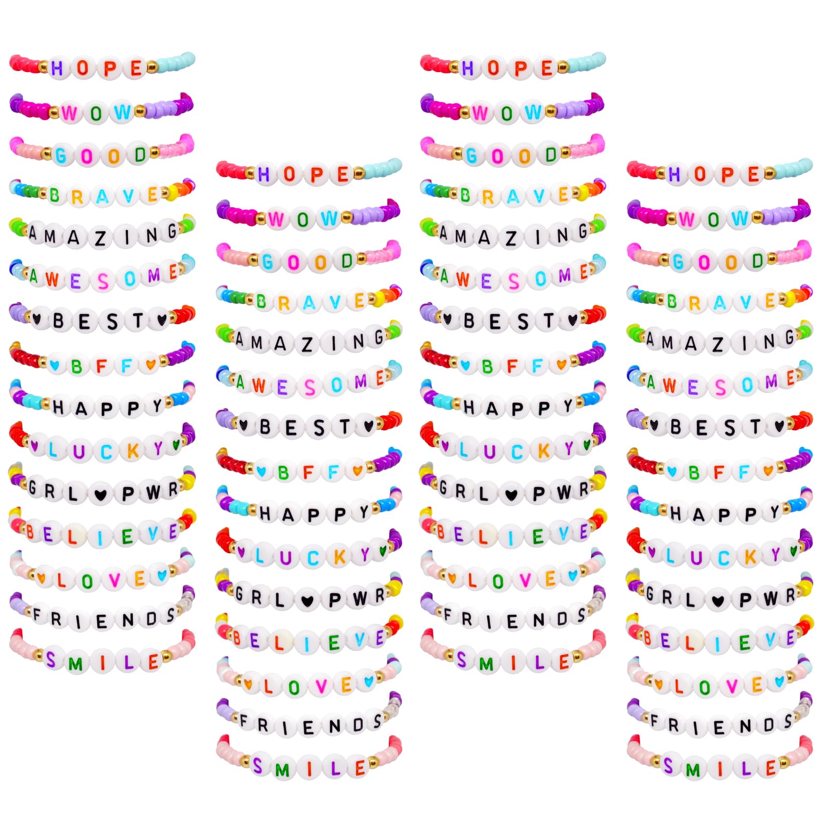 Abundant Quantity Friendship Bracelets Bulk: Receive 60 pieces of kids friendship bracelets in 16 charming styles, with 15 bracelets for each style, each adorned with colorful and exquisite beads, providing a wide selection to meet your daily accessory needs. | Elastic Design: These cute friendship bracelets with an approximate circumference of 6.7 inches (17 cm), these clay bead bracelets feature an elastic design that ensures a comfortable fit for most girls' wrists, making them easy to wear and remove. | Reiable and Comfortable: These bracelets bulk for girls crafted primarily from clay polymer and plastic, these class family bracelets gifts are waterproof, resistant to fading, smooth, and lightweight, ensuring long-lasting wear without causing any discomfort, even when worn for extended periods. | Thoughtful and Heartwarming Gifts: These tswift friendship bracelets for gifting to family on birthdays, anniversaries, or Valentine's Day, these preppy bracelets are sure to make them happy throughout the day. These beaded bracelets for girls can also serve as tokens of friendship to share with their classmates, fostering companionship. | Versatile Styling: These cute and lovely bracelets can be stacked with other accessories to showcase your personal style. With a variety of bracelets to choose from, these beaded bracelets for teen girls are suitable for everyday wear or as part of festive costumes, adding a touch of charm to any ensemble.