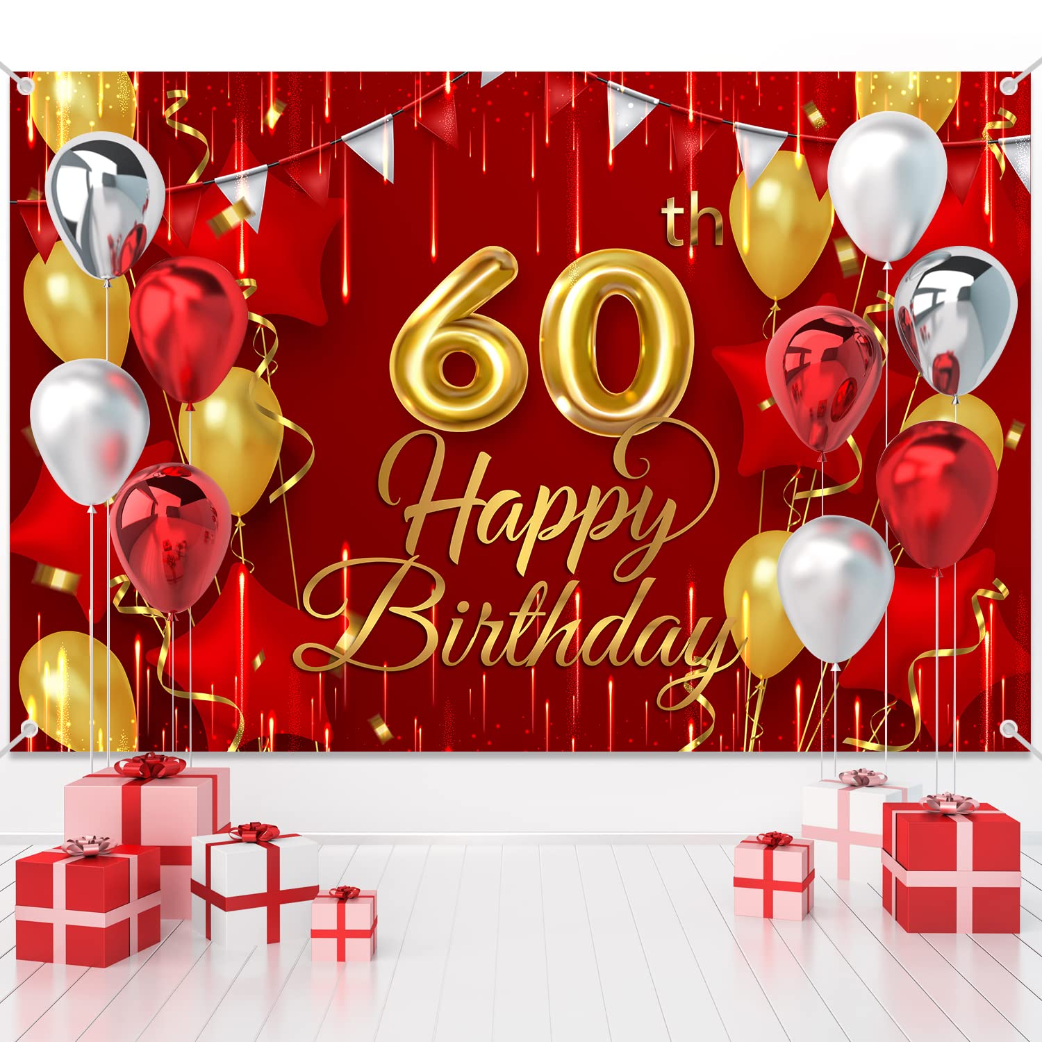 View compare60Th Birthday Backdrop Banner Decorations Red And Gold For Women Men Happy 60 Years Old Bday Background Photography Party Decor Sign Supplies