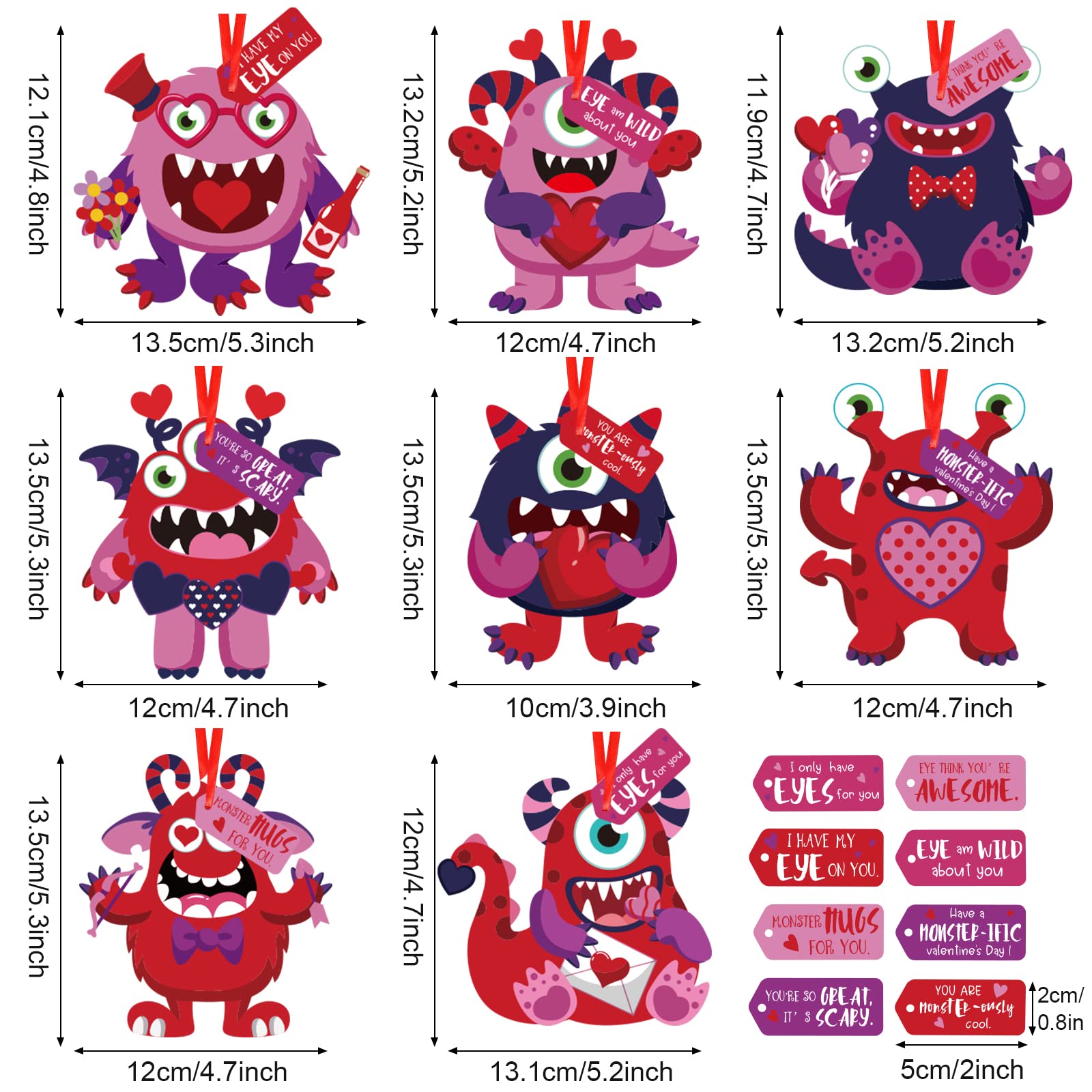 64 Sets Valentines Day Crafts Kits for Kids, Valentines Day DIY Monster Cards for Kids, Valentines Paper Craft Hanging Ornamen