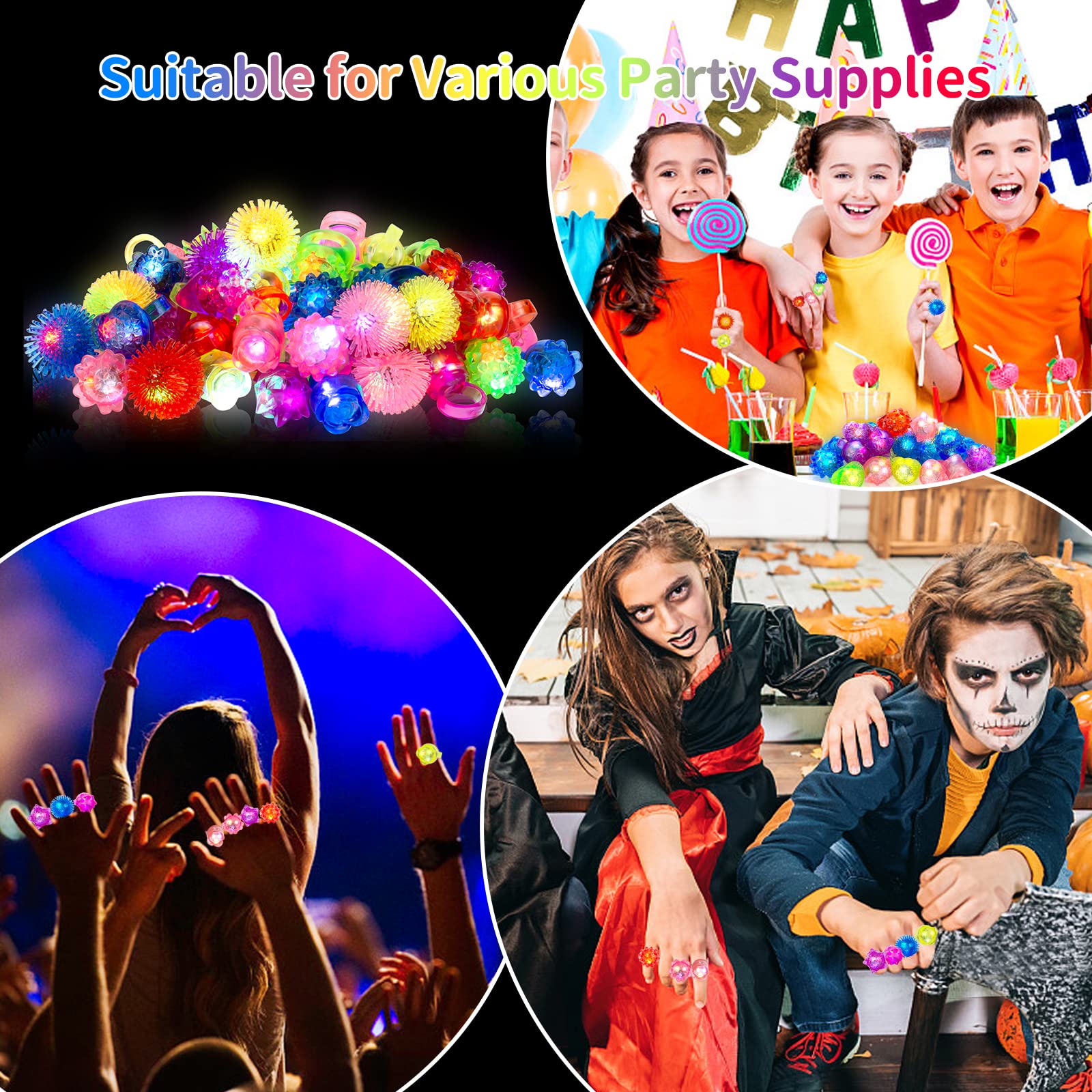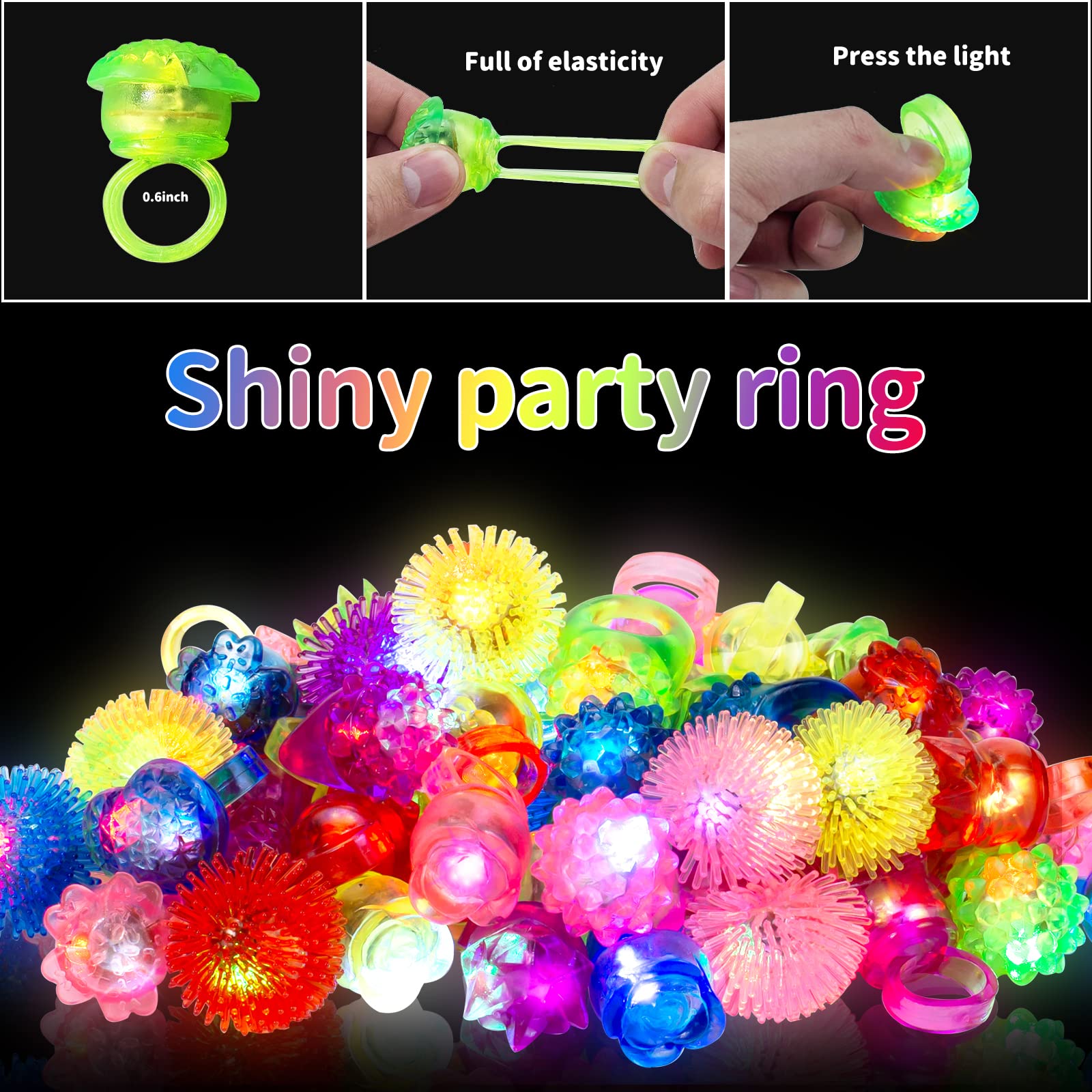 65 Pack Birthday Party Favors For Kids- Goody Bag Stuffers Light Up Rings Bulk Toys, Glow In The Dark Party Supplies - Led Colorful Rubber Rings Surprise Gifts For Halloween Party Easter Concert Shows