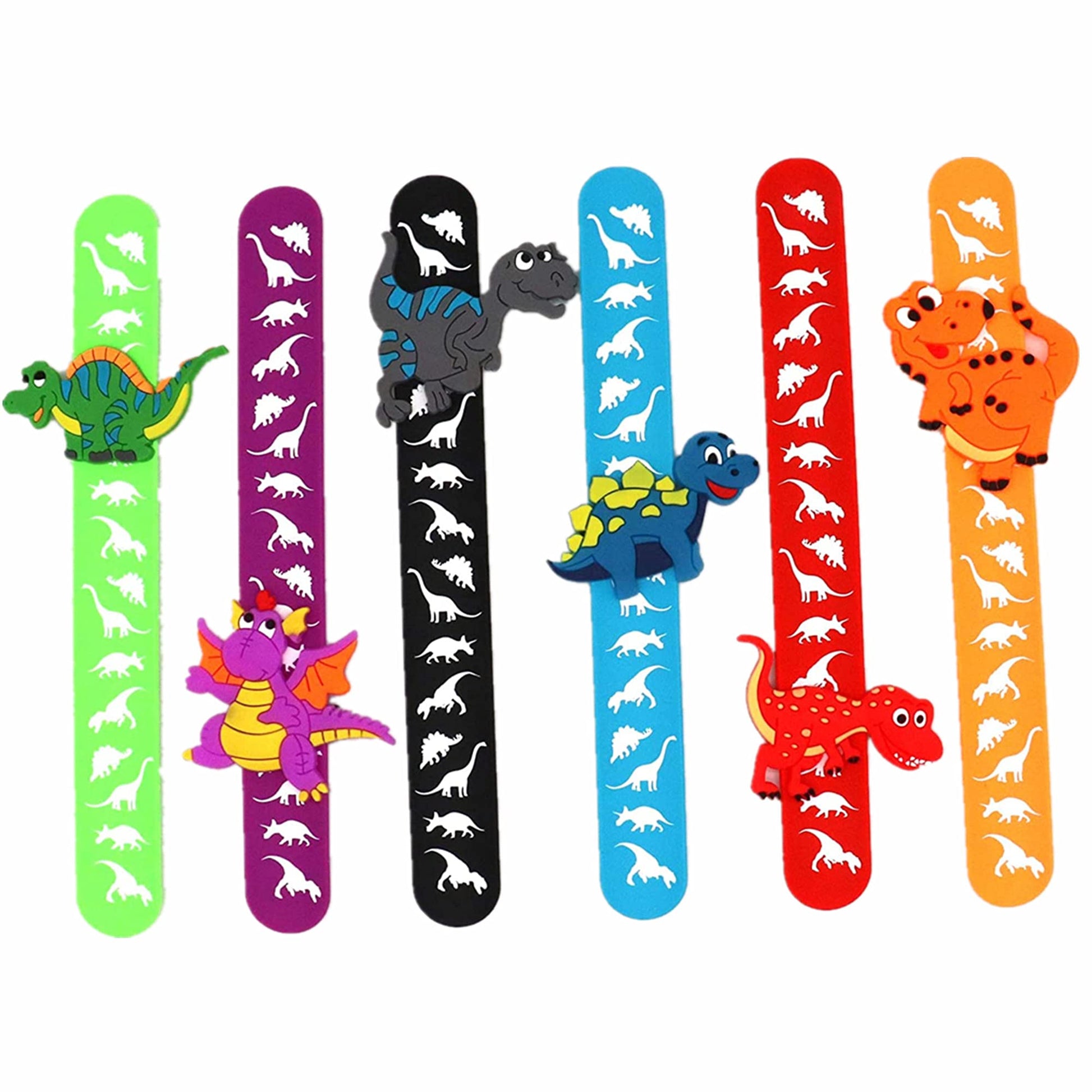 6pcs Cartoon Dragon Dinosaur Theme Party Slap Bracelets silicone Wristbands