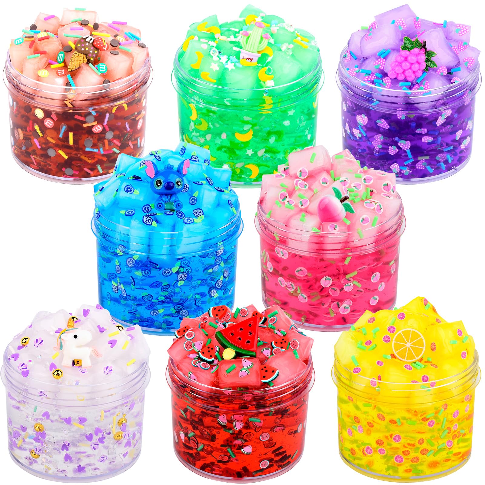 8 Pack Jelly Cube Crunchy Slime Kit, With Peach, Watermelon, Lemon,Blue Clear Slime, Super Soft & Non-Sticky, Diy Crystal Slime Party Favors For Girls Boys