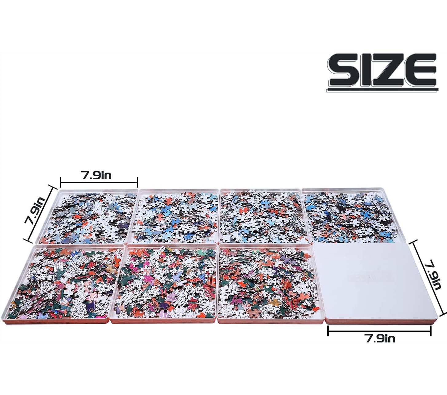 - Q: What sizes of puzzles can the sorting trays accommodate? A: The 8 Puzzle Sorting Trays are designed to fit puzzles ranging from 500 to 1000 pieces, making them perfect for various jigsaw puzzles.