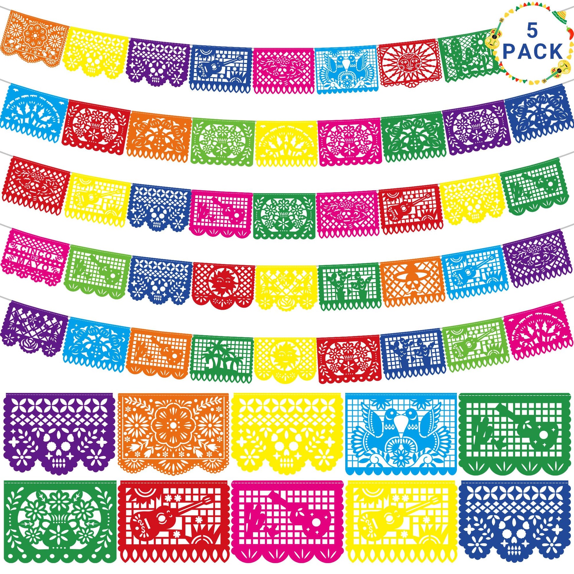 Heartome 90 FT Colorful Fiesta Party Decorations - 5 Pack Large Plastic Papel Picado Banner for Cinco De Mayo & Dia De Los Muertos Decor