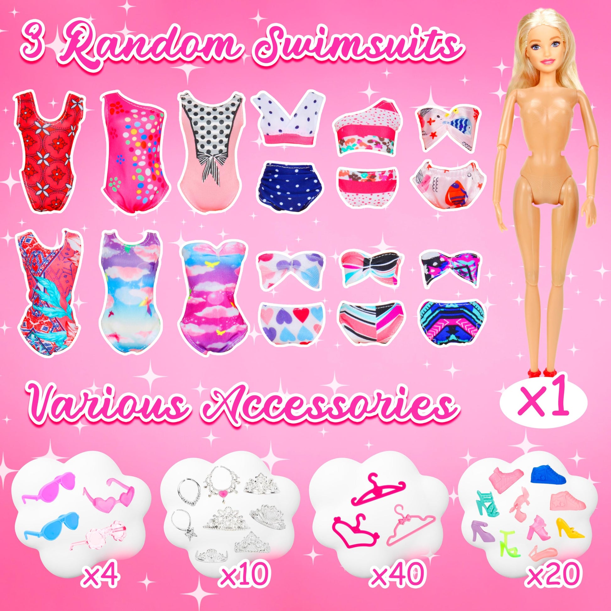View compare93 Pcs Doll Clothes And Accessories With Doll, Wedding Gown Dresses, Tops And Pants, Fashion Dresses, Swimming Suits, Shoe, Hangers,Doll Dress Up Toys For Girls In Gifts Package