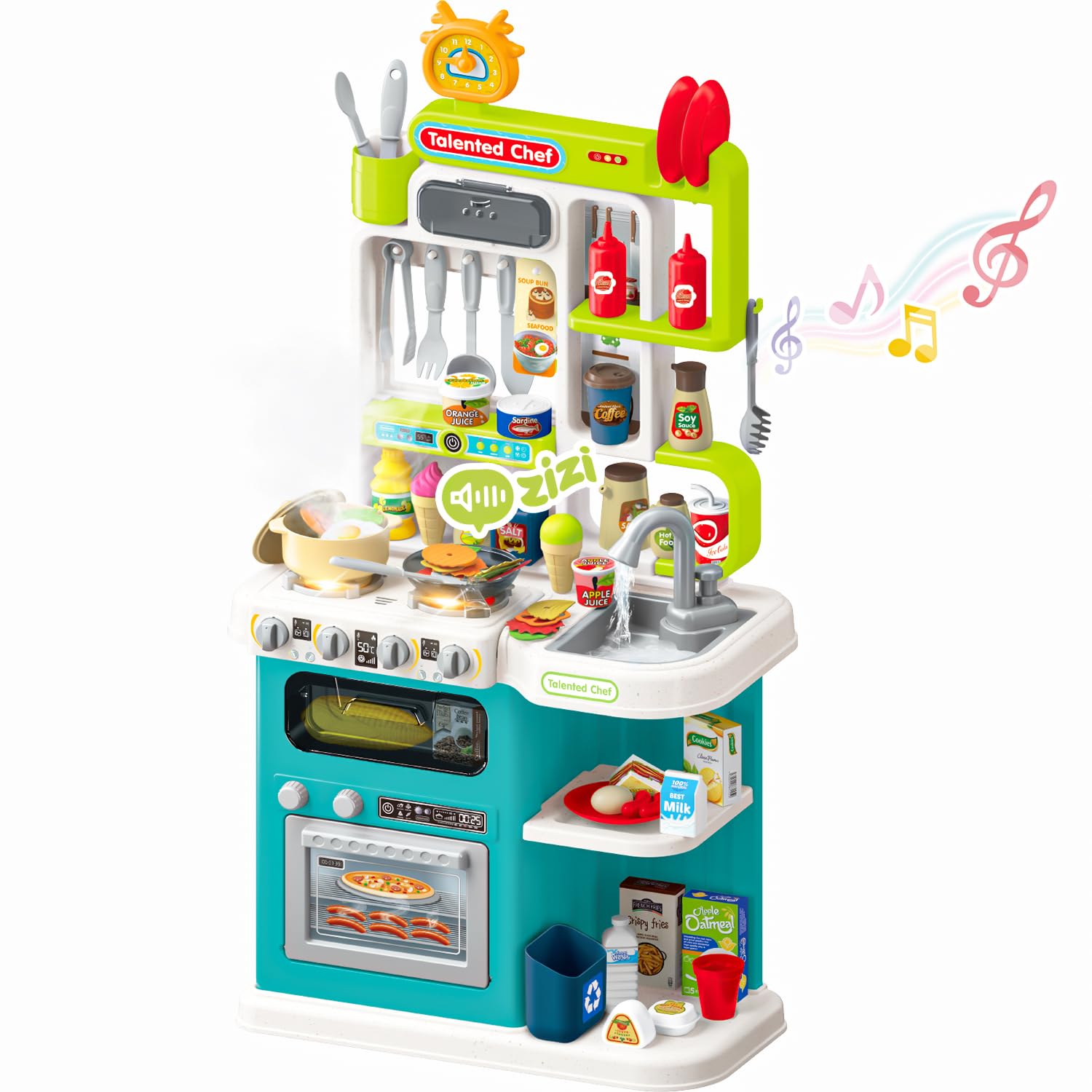- Q: Does the play kitchen come with realistic sound effects? A: Yes, the play kitchen features lifelike sound effects that mimic real cooking sounds, enhancing the play experience and making it more engaging for kids.