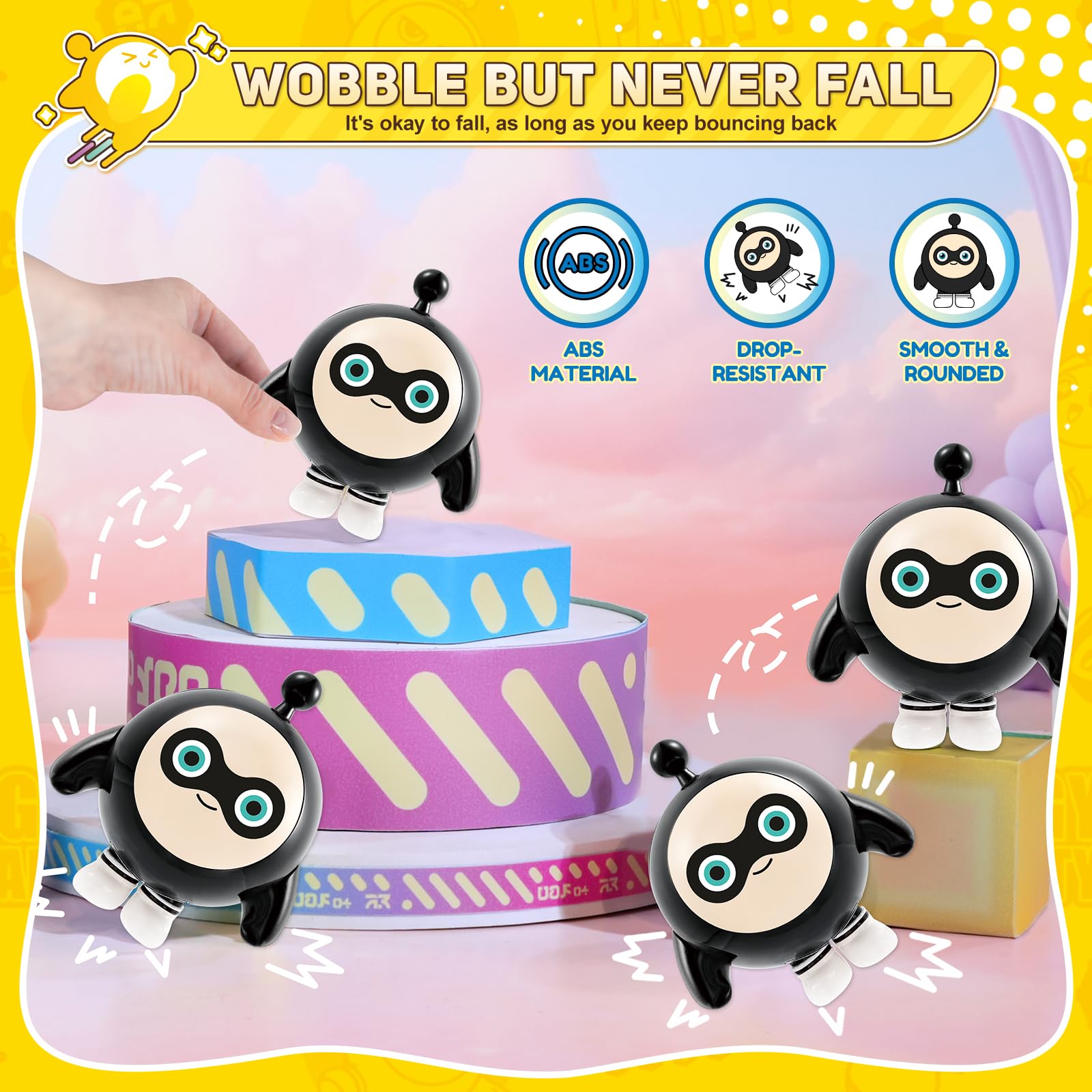 Eggy Magic and Character Connection: Eggy Party figures toys bring beloved game characters to life, Each eggy has a unique personality, from Rocky's mischievous nature to Mint's kindness; These dynamic, egg-shaped figures add a layer of emotional value and fun, making them more than just toys | Resilience and Life Lessons: The tumbler wobbler toy feature teaches resilience, as the eggy always bounce back when knocked over; This subtle lesson in persistence encourages kids to keep trying, no matter the challenges they face | Creativity and Skill Development: Kids can role-play, create stories, and explore different personalities, promoting creativity and empathy, while offering parents a worry-free way to encourage play that aligns with positive values | Wobble-and-stand Transformation: These Eggy Party wobbler toys more than just static toys; they're dynamic friends ready to come to life in your child's hands; And with their two fun forms-standing tall or wobbling around as adorable, egg-like roly-polies-they spark imagination and invite endless play | Emotional and Practical Value: Eggy Party action figures offer both emotional connection and practical benefits, promoting positive values and growth mindset; They provide lasting entertainment while helping kids learn important life lessons in a fun, interactive way