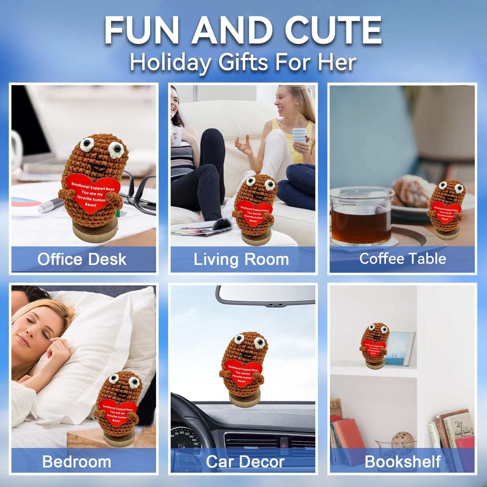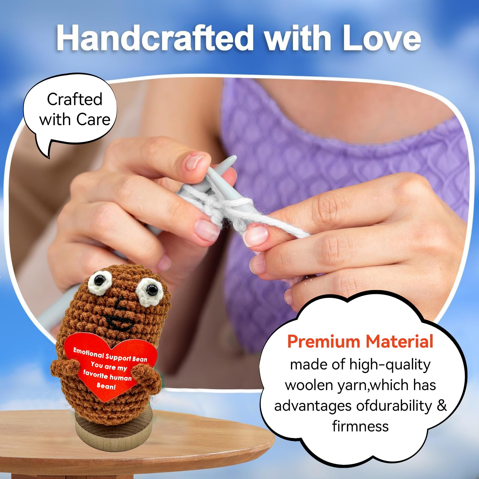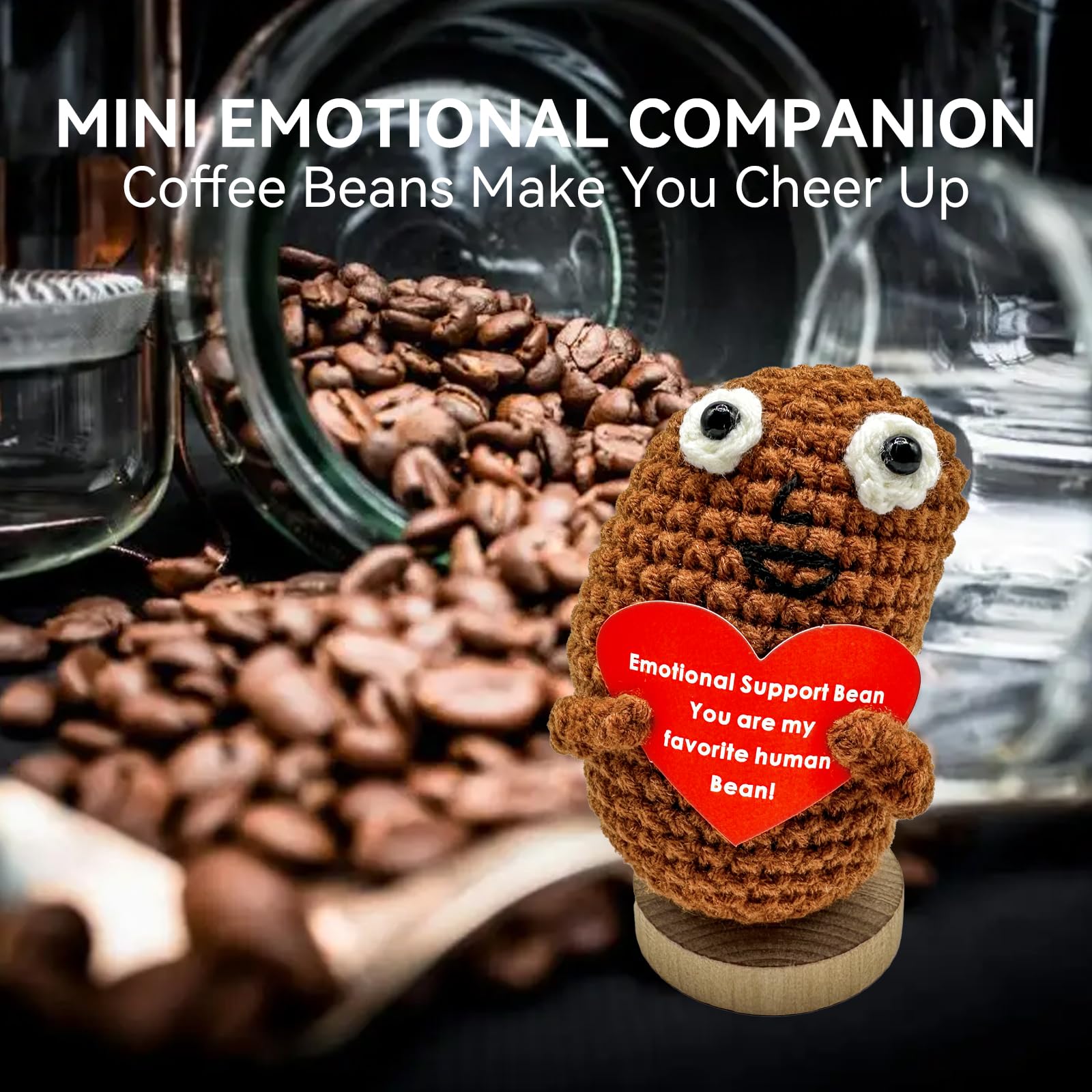 Mini Funny Positive Potato, 3 inch Knitted Doll with Positive Card for Cheer Up Gifts and Party Decorations, Cute Positive Crochet Doll for Birthday Gifts (Positive Coffee Bean)