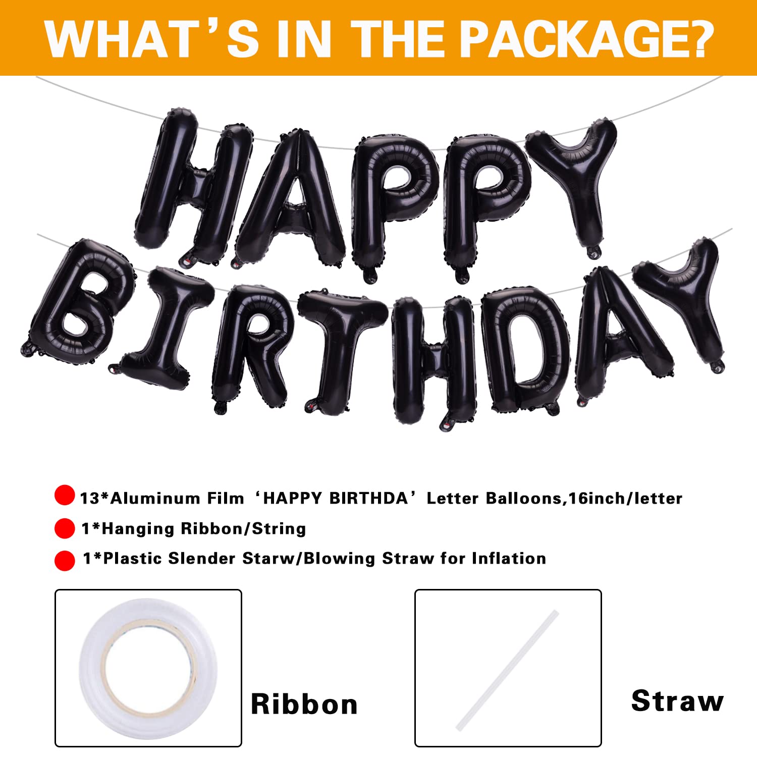 - Q: How many balloons are included in the package? A: The package includes fifteen pieces of letter balloons. This set also comes with one straw and one ribbon for easy assembly.