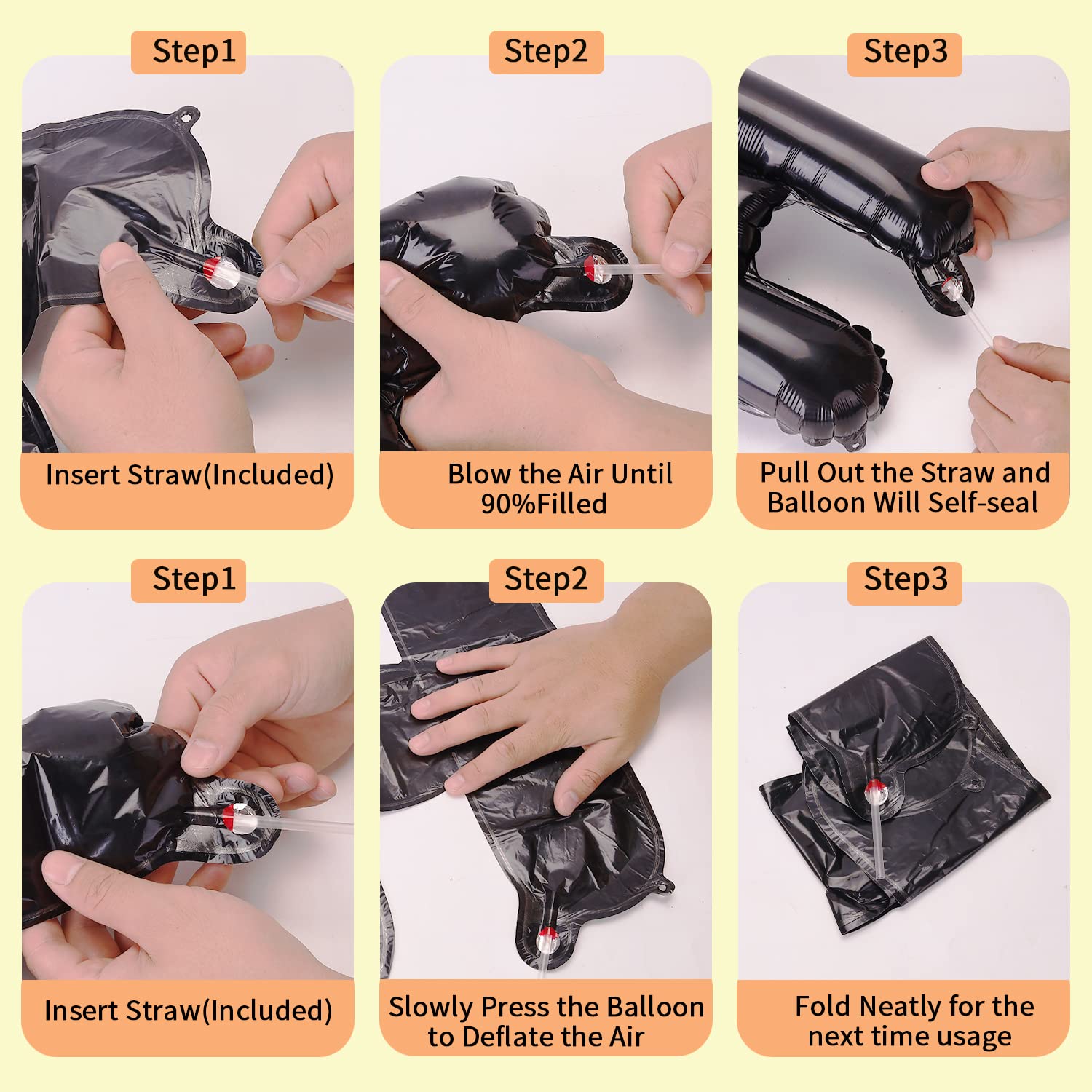 - Q: How do I inflate the Happy Birthday Balloons? A: You can inflate the Happy Birthday Balloons using a straw or a hand-held air pump. They are self-sealing to make the process easier.