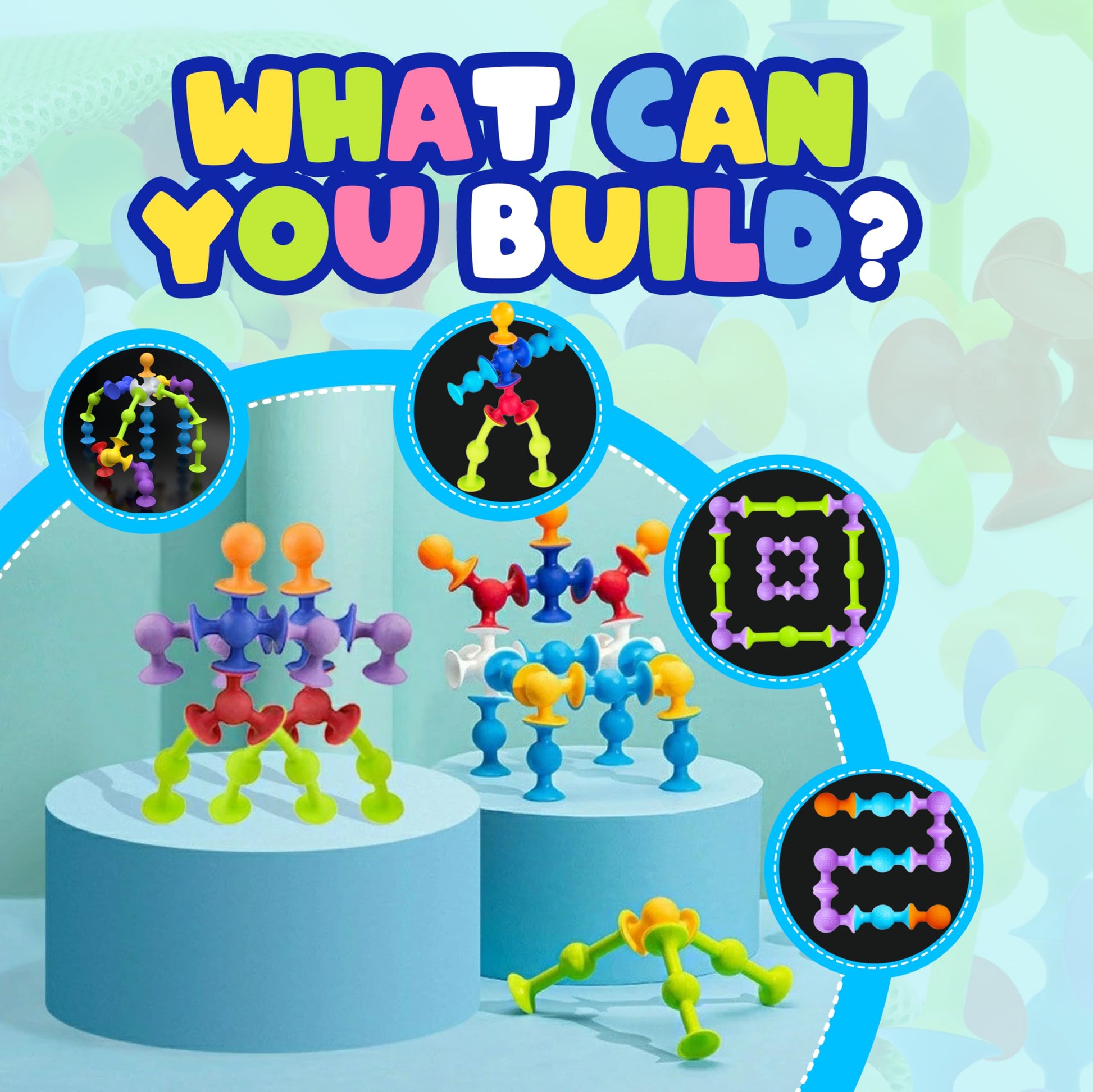 Silly Suckers Suction Toys 50 Pcs, Toddler Toys, Building Sets, Toys For Toddlers 1-3, Brain Toys 3-4 Years Old Includes: