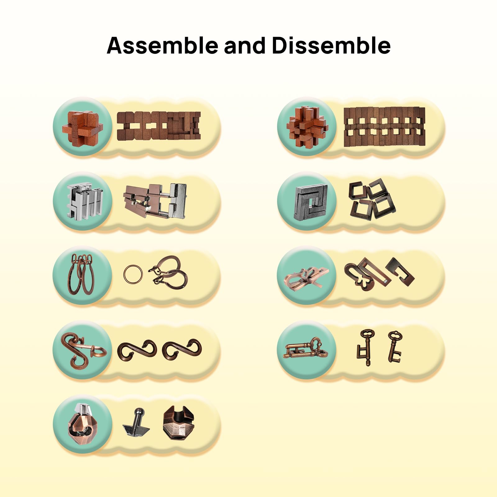 - Q: What materials are used in the ActPo brain teaser puzzles? A: The ActPo brain teaser puzzles are made from high-quality zinc alloy and wood, ensuring durability and safety while providing an enjoyable puzzle experience.